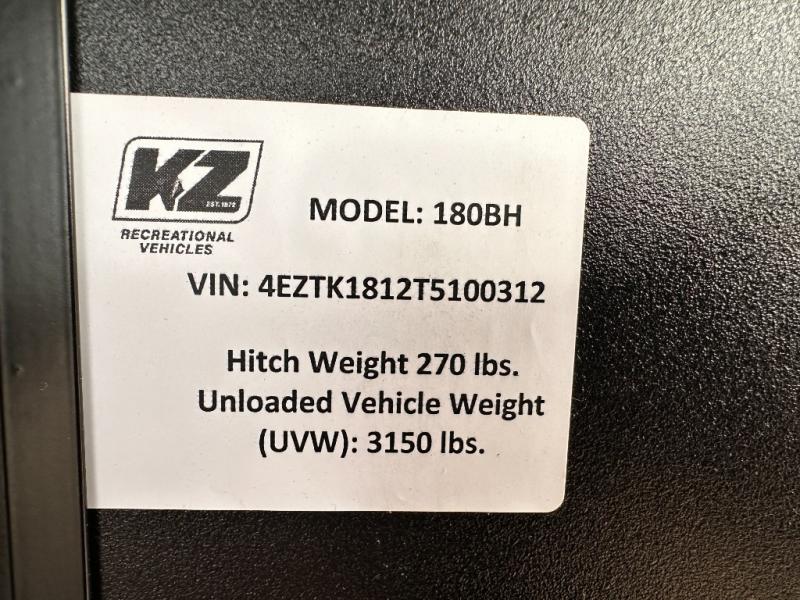 KZ Sportsmen Classic travel trailer 180BH highlights: