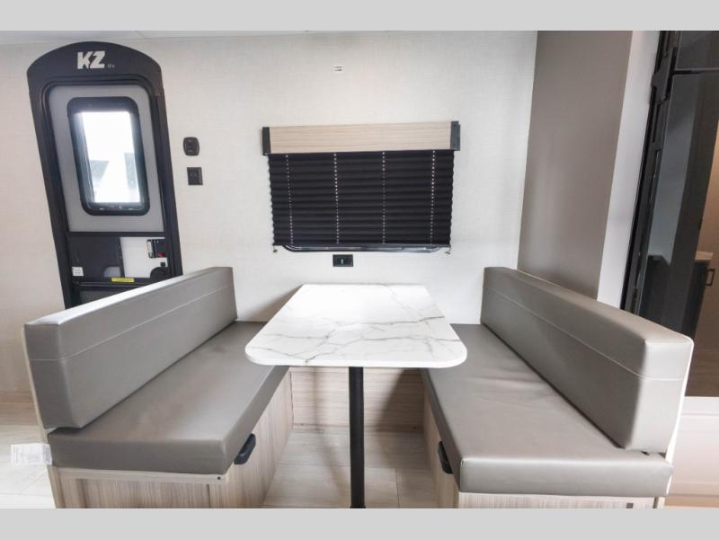 With any Sportsmen Classis travel trailer by KZ you will find durable construction materials, like the 3/8" fully-walkable roof and the one-piece seamless Tufflex material. Each model includes scissor-style stabilizer jacks, a Key-Alike program for baggage and entry doors, and a Leash Latch with a bonus beverage opener. You will find interior and exterior speakers plus backup camera prep and solar prep. The Sportsmen Classic is designed to make you feel at home with rail-style cabinet doors, residential grade linoleum, and plenty of storage space for all your belongings.