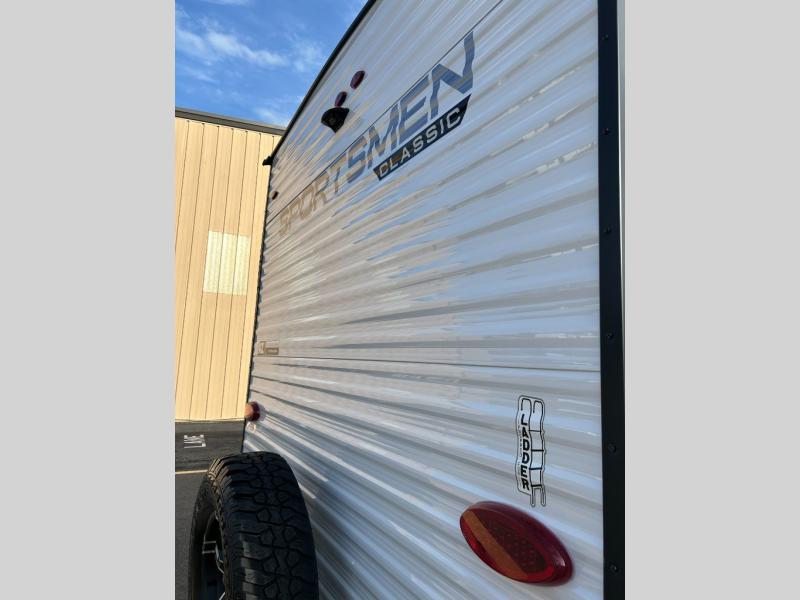 With any Sportsmen Classis travel trailer by KZ you will find durable construction materials, like the 3/8" fully-walkable roof and the one-piece seamless Tufflex material. Each model includes scissor-style stabilizer jacks, a Key-Alike program for baggage and entry doors, and a Leash Latch with a bonus beverage opener. You will find interior and exterior speakers plus backup camera prep and solar prep. The Sportsmen Classic is designed to make you feel at home with rail-style cabinet doors, residential grade linoleum, and plenty of storage space for all your belongings.