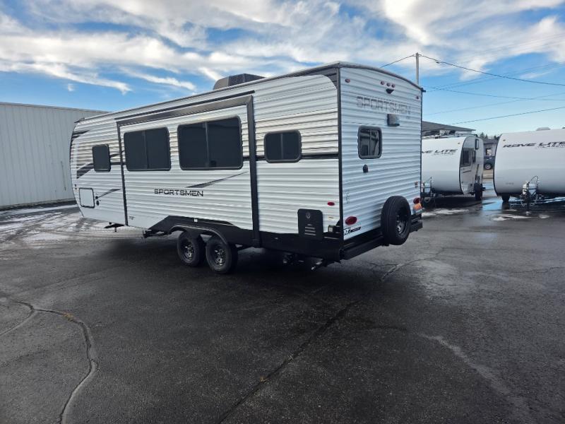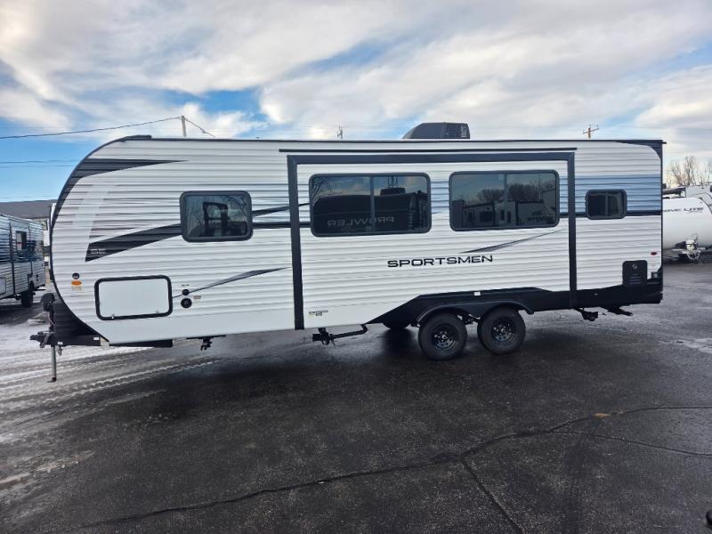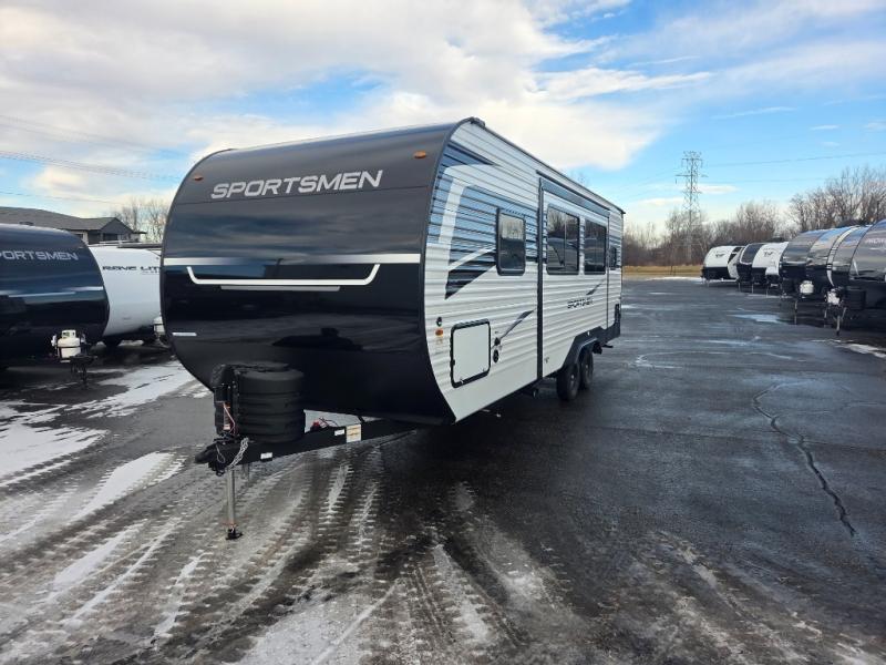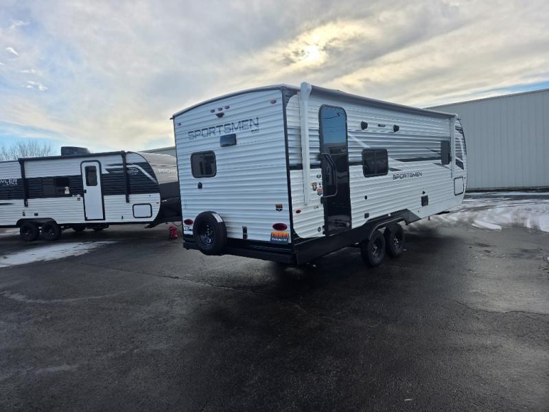 Each Sportsmen SE travel trailer by KZ is constructed with KZ exclusive tough shield exterior metal, a one-piece seamless walk-on Tufflex roofing material, and diamond plate rock guard to protect your unit from road debris. You will appreciate the extra large baggage doors for stowing away your gear when not in use, and tinted windows to help keep the harmful sun rays out plus keeping it cooler inside. Some of the exterior conveniences found in the mandatory Advantage Package are the solid folding steps with a large folding grab handle for easy entry and exit, a full glass friction hinged entry door, plus an exterior shower for your pets or to rinse off before you head inside. You'll also appreciate the nitrogen-filled tires, solar and backup camera prep, plus a Leash Latch with a bonus beverage opener. You'll feel right at home inside with linoleum flooring throughout, a 13,500 BTU air conditioner, large overhead cabinets, a shower surround, and much more!