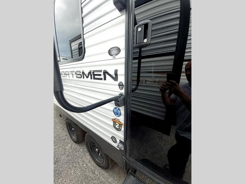 Each Sportsmen SE travel trailer and toy hauler by KZ is constructed with KZ exclusive tough shield exterior metal, a one-piece seamless walk-on Tufflex roofing material, and diamond plate rock guard to protect your unit from road debris. You will appreciate the extra large baggage doors for stowing away your gear when not in use, and tinted windows to help keep the harmful sun rays out plus keeping it cooler inside. Some of the exterior conveniences found in the mandatory Advantage Package are the solid folding steps with a large folding grab handle for easy entry and exit, a full glass friction hinged entry door, plus an exterior shower for your pets or to rinse off before you head inside. You'll also appreciate the nitrogen-filled tires, solar and backup camera prep, plus a Leash Latch with a bonus beverage opener. You'll feel right at home inside with linoleum flooring throughout, a 13,500 BTU air conditioner, large overhead cabinets, a shower surround, and much more!