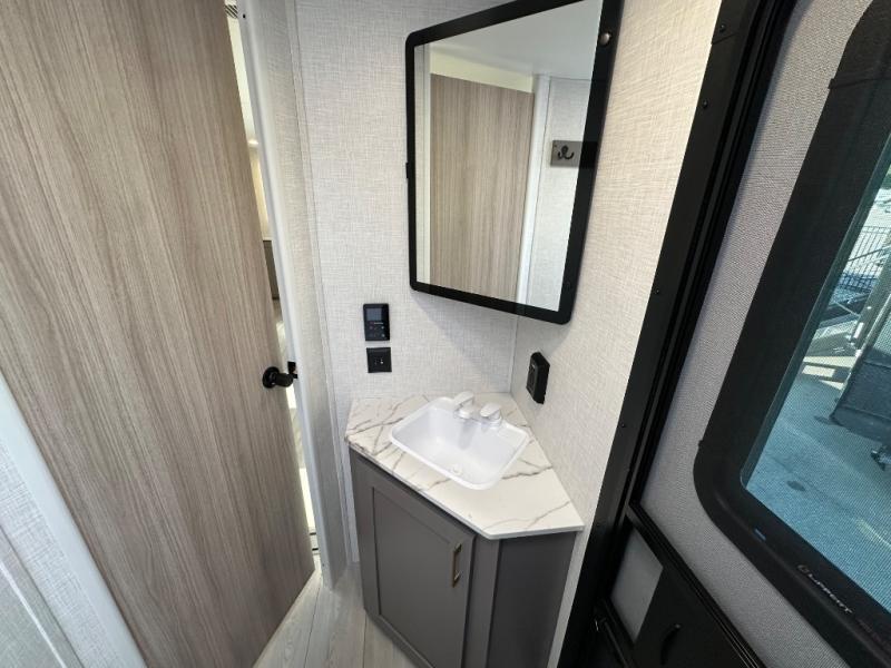 Each Sportsmen SE travel trailer and toy hauler by KZ is constructed with KZ exclusive tough shield exterior metal, a one-piece seamless walk-on Tufflex roofing material, and diamond plate rock guard to protect your unit from road debris. You will appreciate the extra large baggage doors for stowing away your gear when not in use, and tinted windows to help keep the harmful sun rays out plus keeping it cooler inside. Some of the exterior conveniences found in the mandatory Advantage Package are the solid folding steps with a large folding grab handle for easy entry and exit, a full glass friction hinged entry door, plus an exterior shower for your pets or to rinse off before you head inside. You'll also appreciate the nitrogen-filled tires, solar and backup camera prep, plus a Leash Latch with a bonus beverage opener. You'll feel right at home inside with linoleum flooring throughout, a 13,500 BTU air conditioner, large overhead cabinets, a shower surround, and much more!