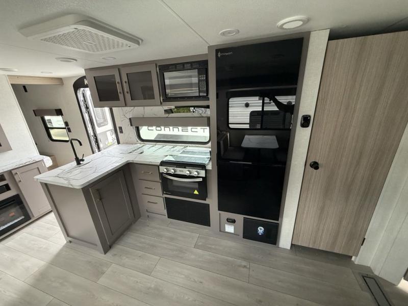 Each Sportsmen SE travel trailer and toy hauler by KZ is constructed with KZ exclusive tough shield exterior metal, a one-piece seamless walk-on Tufflex roofing material, and diamond plate rock guard to protect your unit from road debris. You will appreciate the extra large baggage doors for stowing away your gear when not in use, and tinted windows to help keep the harmful sun rays out plus keeping it cooler inside. Some of the exterior conveniences found in the mandatory Advantage Package are the solid folding steps with a large folding grab handle for easy entry and exit, a full glass friction hinged entry door, plus an exterior shower for your pets or to rinse off before you head inside. You'll also appreciate the nitrogen-filled tires, solar and backup camera prep, plus a Leash Latch with a bonus beverage opener. You'll feel right at home inside with linoleum flooring throughout, a 13,500 BTU air conditioner, large overhead cabinets, a shower surround, and much more!
