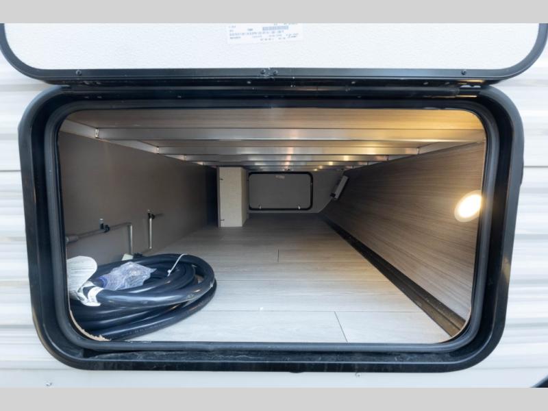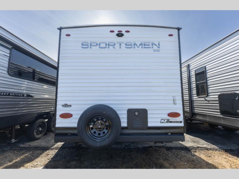 Each Sportsmen SE travel trailer and toy hauler by KZ is constructed with KZ exclusive tough shield exterior metal, a one-piece seamless walk-on Tufflex roofing material, and diamond plate rock guard to protect your unit from road debris. You will appreciate the extra large baggage doors for stowing away your gear when not in use, and tinted windows to help keep the harmful sun rays out plus keeping it cooler inside. Some of the exterior conveniences found in the mandatory Advantage Package are the solid folding steps with a large folding grab handle for easy entry and exit, a full glass friction hinged entry door, plus an exterior shower for your pets or to rinse off before you head inside. You'll also appreciate the nitrogen-filled tires, solar and backup camera prep, plus a Leash Latch with a bonus beverage opener. You'll feel right at home inside with linoleum flooring throughout, a 13,500 BTU air conditioner, large overhead cabinets, a shower surround, and much more!