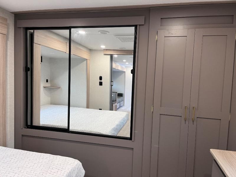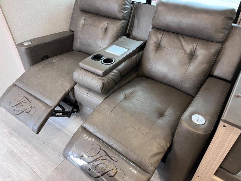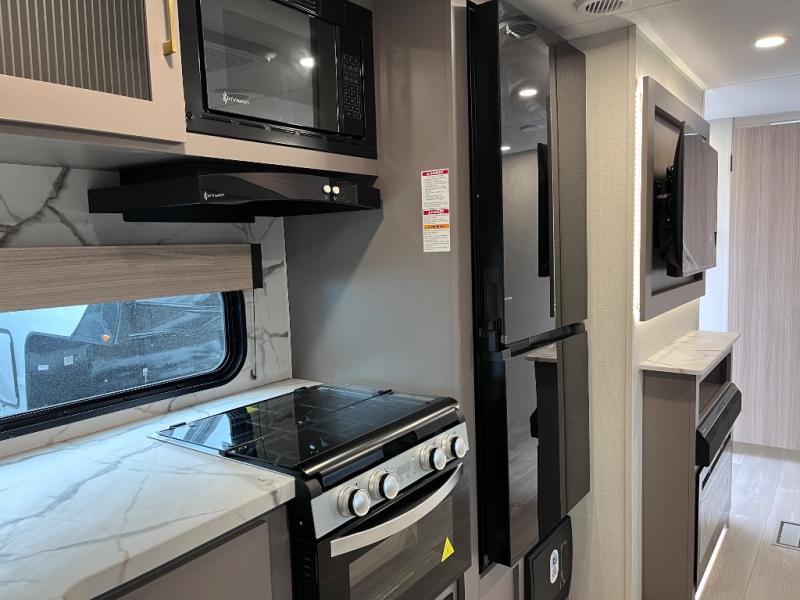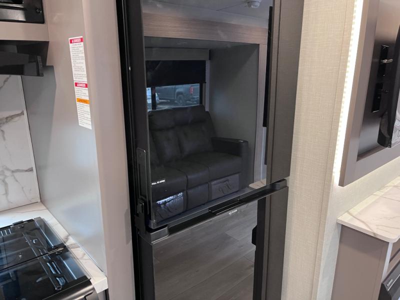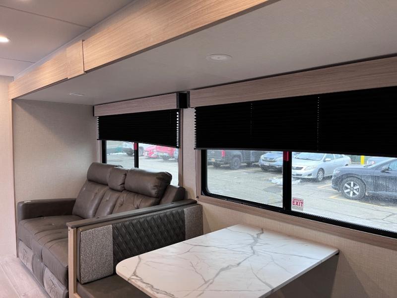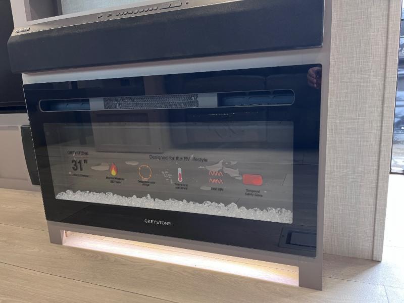 Let this travel trailer wow you with its interior comforts and exterior conveniences! There is ample space inside to move about thanks to the double slides; a large slide in the living room and a queen bed slide in the front bedroom! Your crew can relax on the 70" jackknife sofa across from the fireplace and LED TV, or play a game at the booth dinette. You will appreciate having a walk-in pantry with coat hooks right as you enter the unit, and there is more storage space found throughout. The full rear bath features a 30" x 40" shower, a linen closet, plus dual bath sinks so you both can get ready for bed at the same time! This model also includes an outside kitchen with a griddle and refrigerator plus a full interior kitchen as well!