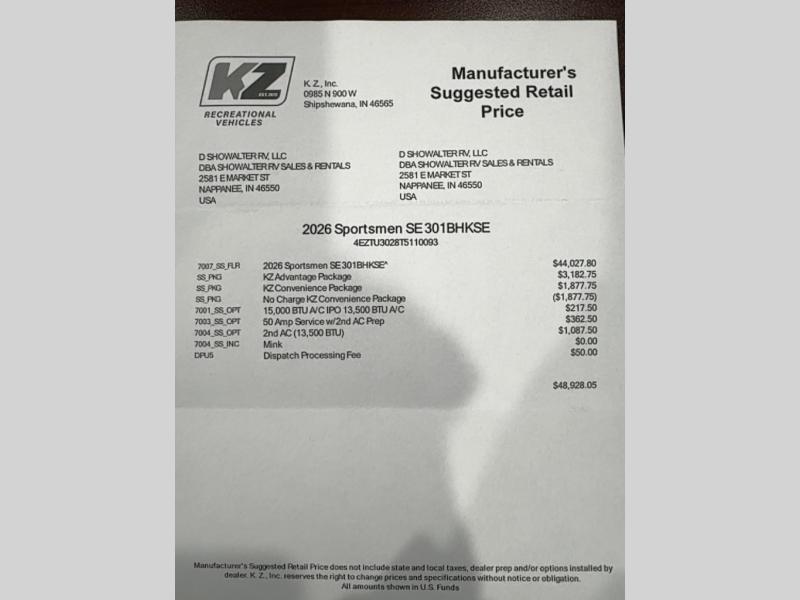 New 2026 KZ Sportsmen SE 301BHKSE Travel Trailer