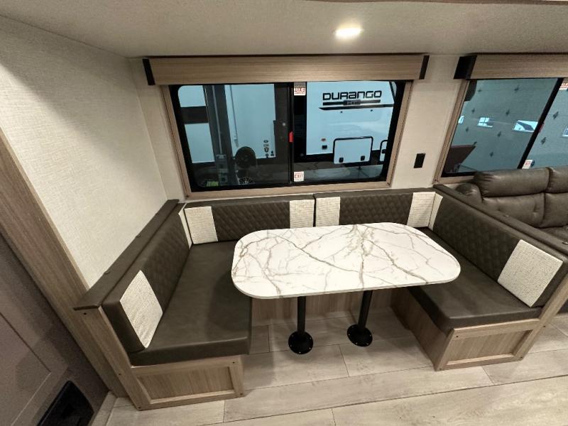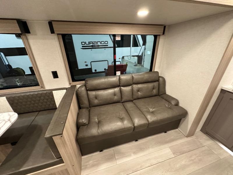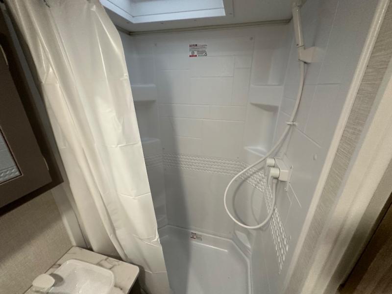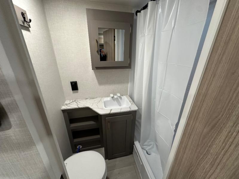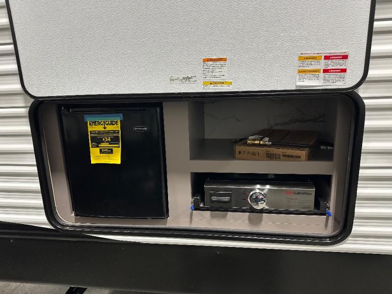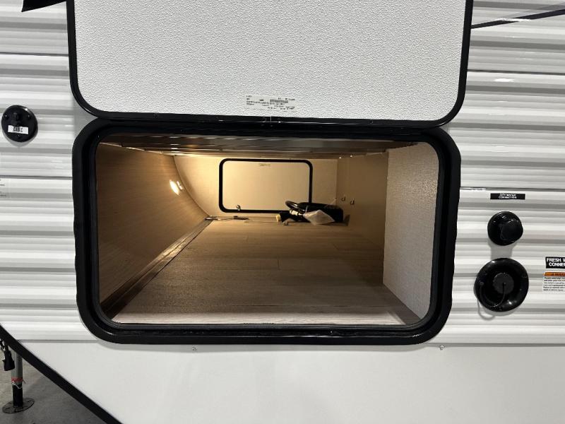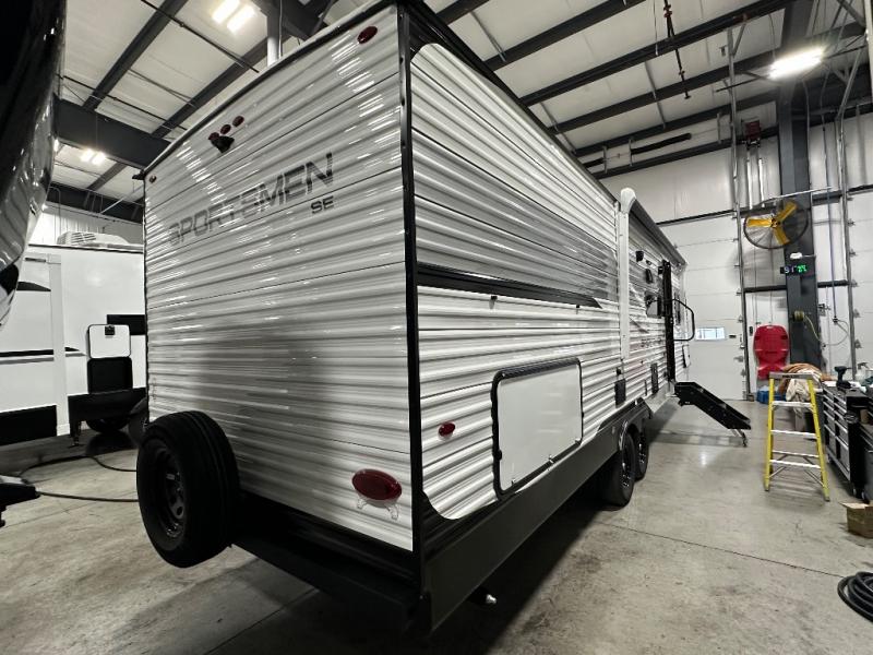 Each Sportsmen SE travel trailer and toy hauler by KZ is constructed with KZ exclusive tough shield exterior metal, a one-piece seamless walk-on Tufflex roofing material, and diamond plate rock guard to protect your unit from road debris. You will appreciate the extra large baggage doors for stowing away your gear when not in use, and tinted windows to help keep the harmful sun rays out plus keeping it cooler inside. Some of the exterior conveniences found in the mandatory Advantage Package are the solid folding steps with a large folding grab handle for easy entry and exit, a full glass friction hinged entry door, plus an exterior shower for your pets or to rinse off before you head inside. You'll also appreciate the nitrogen-filled tires, solar and backup camera prep, plus a Leash Latch with a bonus beverage opener. You'll feel right at home inside with linoleum flooring throughout, a 13,500 BTU air conditioner, large overhead cabinets, a shower surround, and much more!