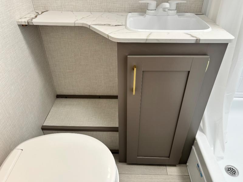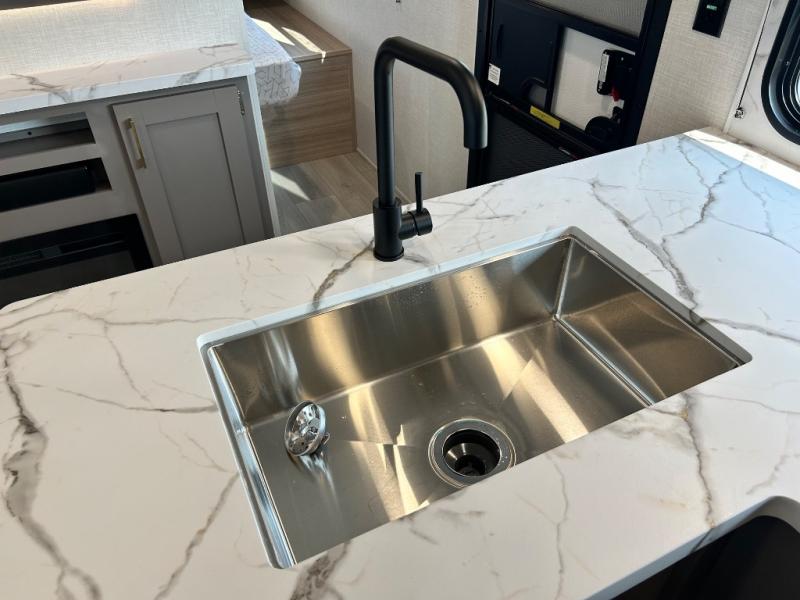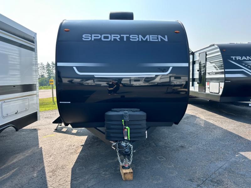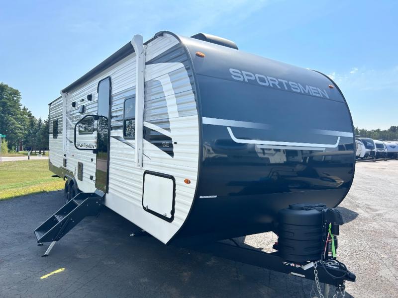 Each Sportsmen SE travel trailer and toy hauler by KZ is constructed with KZ exclusive tough shield exterior metal, a one-piece seamless walk-on Tufflex roofing material, and diamond plate rock guard to protect your unit from road debris. You will appreciate the extra large baggage doors for stowing away your gear when not in use, and tinted windows to help keep the harmful sun rays out plus keeping it cooler inside. Some of the exterior conveniences found in the mandatory Advantage Package are the solid folding steps with a large folding grab handle for easy entry and exit, a full glass friction hinged entry door, plus an exterior shower for your pets or to rinse off before you head inside. You'll also appreciate the nitrogen-filled tires, solar and backup camera prep, plus a Leash Latch with a bonus beverage opener. You'll feel right at home inside with linoleum flooring throughout, a 13,500 BTU air conditioner, large overhead cabinets, a shower surround, and much more!