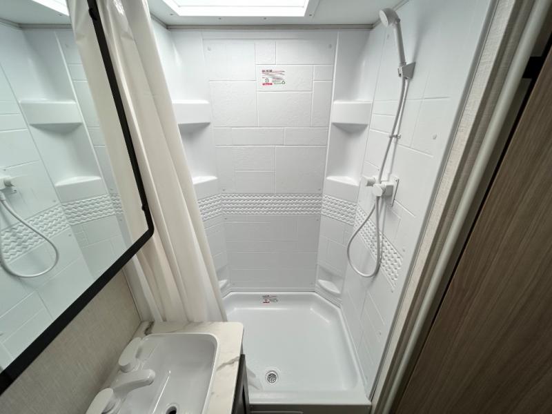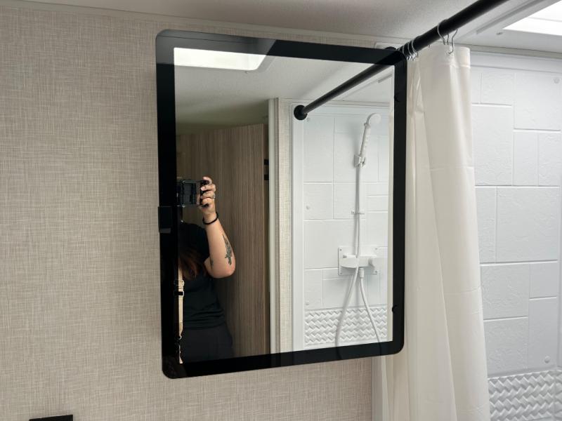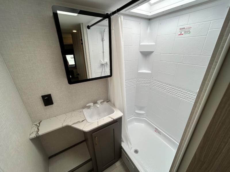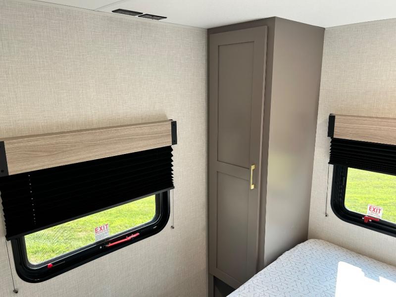 Wow! Take a look at this travel trailer with two private bedroom that include queen beds and space to store your clothes. Each room also has a TV mount if you choose to bring along your own television for late-night movies in bed. The main living area is spacious with the large slide out, and here you can relax on the sofa or around the U-shaped dinette. This model also includes a full bath with a 40" shower that will allow you to clean up each day.