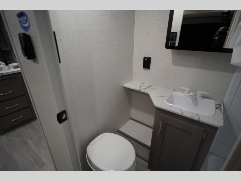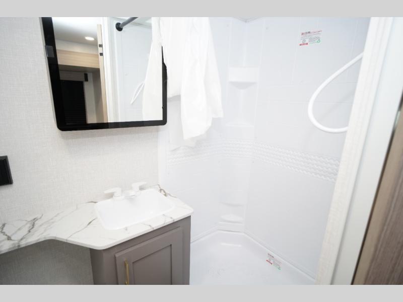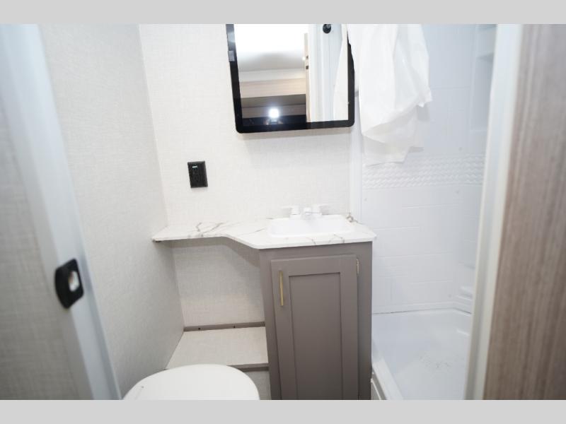Wow! Take a look at this travel trailer with two private bedroom that include queen beds and space to store your clothes. Each room also has a TV mount if you choose to bring along your own television for late-night movies in bed. The main living area is spacious with the large slide out, and here you can relax on the sofa or around the U-shaped dinette. This model also includes a full bath with a 40" shower that will allow you to clean up each day.
