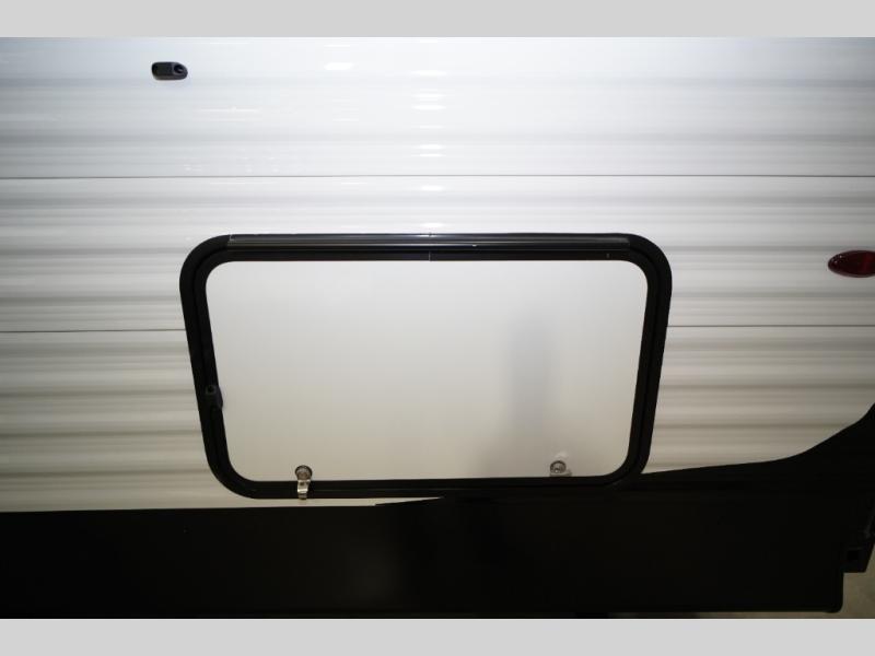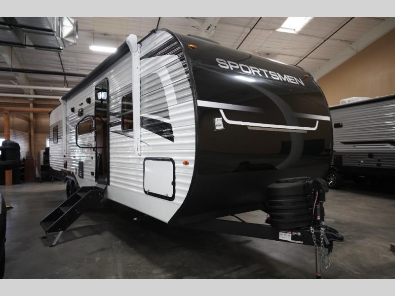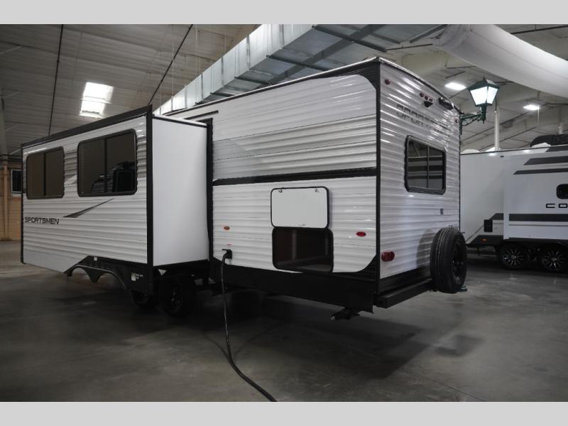 Each Sportsmen SE travel trailer and toy hauler by KZ is constructed with KZ exclusive tough shield exterior metal, a one-piece seamless walk-on Tufflex roofing material, and diamond plate rock guard to protect your unit from road debris. You will appreciate the extra large baggage doors for stowing away your gear when not in use, and tinted windows to help keep the harmful sun rays out plus keeping it cooler inside. Some of the exterior conveniences found in the mandatory Advantage Package are the solid folding steps with a large folding grab handle for easy entry and exit, a full glass friction hinged entry door, plus an exterior shower for your pets or to rinse off before you head inside. You'll also appreciate the nitrogen-filled tires, solar and backup camera prep, plus a Leash Latch with a bonus beverage opener. You'll feel right at home inside with linoleum flooring throughout, a 13,500 BTU air conditioner, large overhead cabinets, a shower surround, and much more!