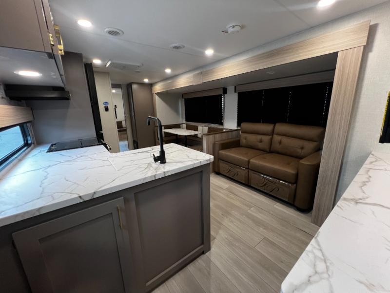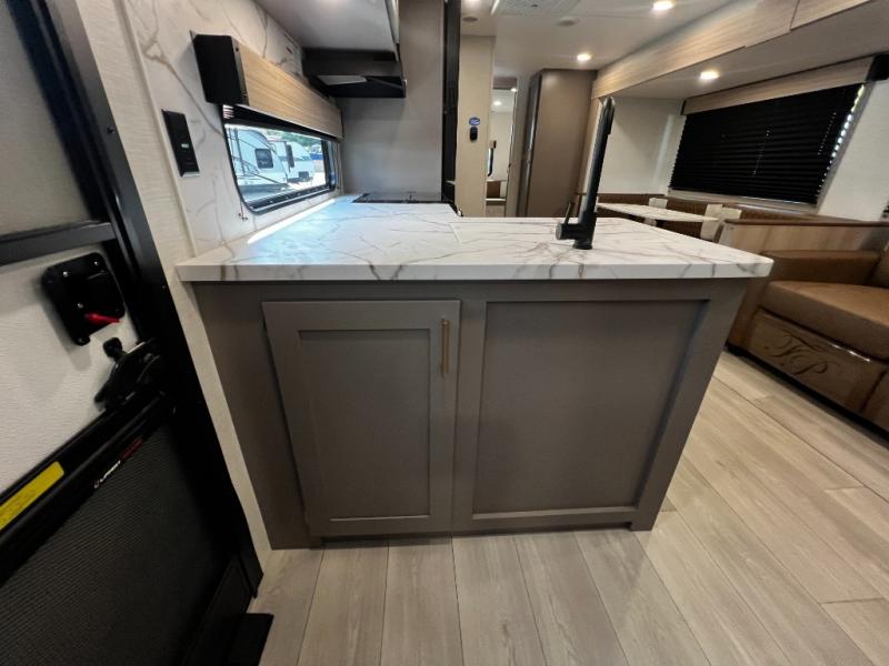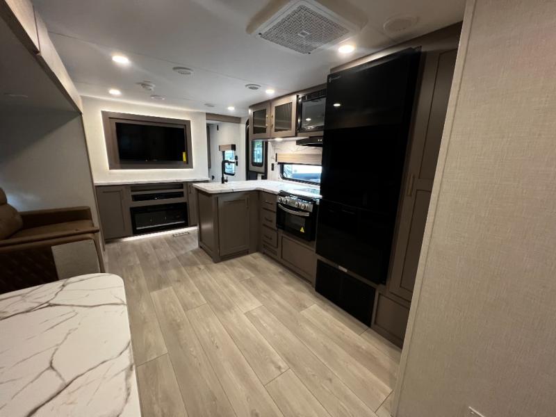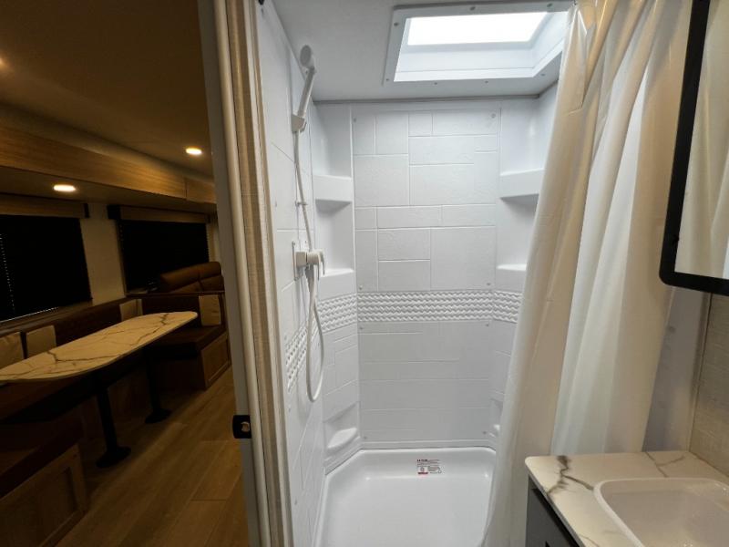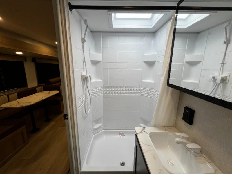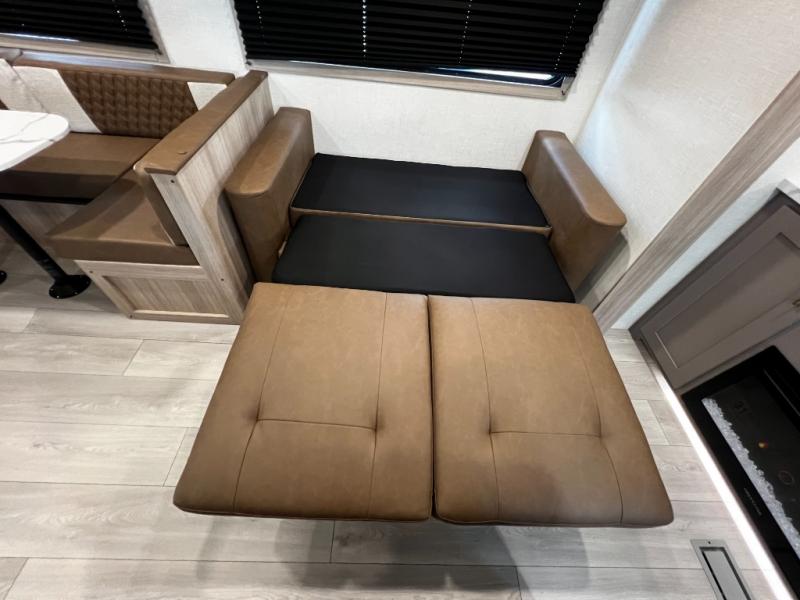 Love cooking under the open sky? The outdoor kitchen with griddle makes it easy to whip up burgers, breakfast, or campsite classics while enjoying the view. And with a 20' power awning with LED lights, you’ve got the perfect hangout spot day or night.