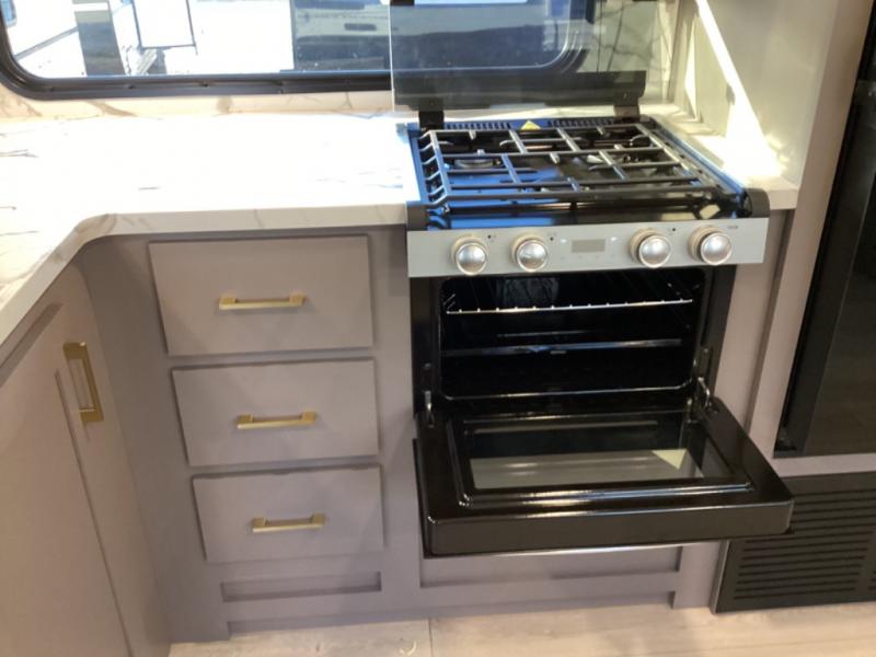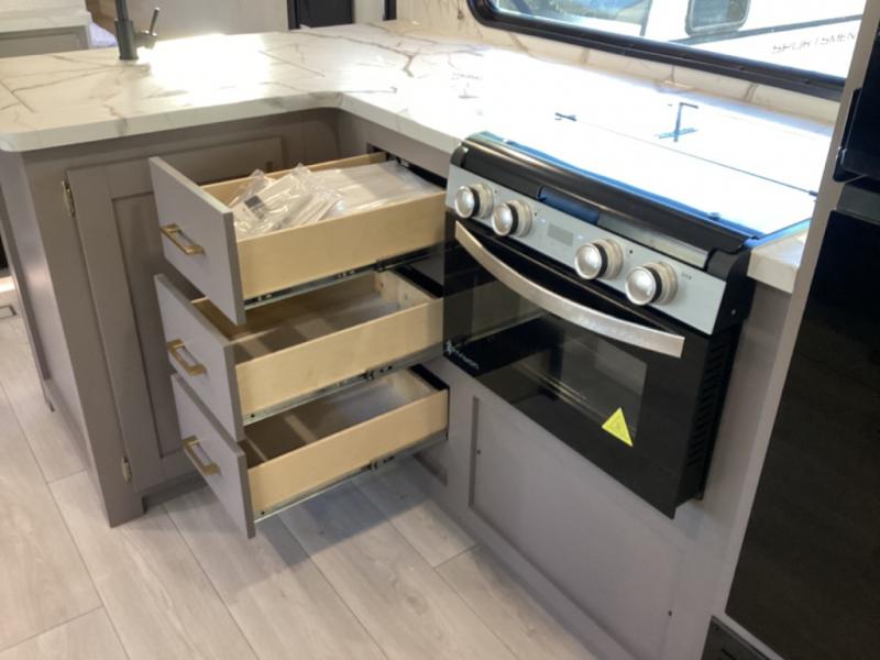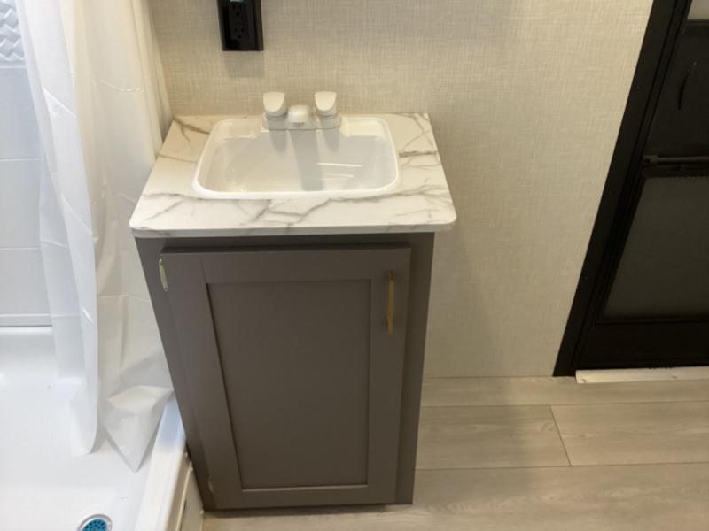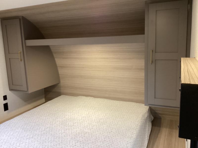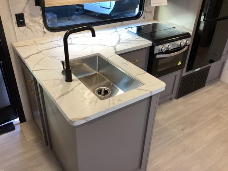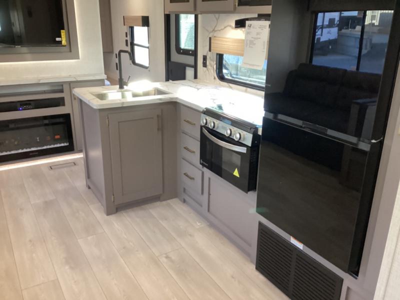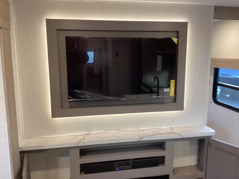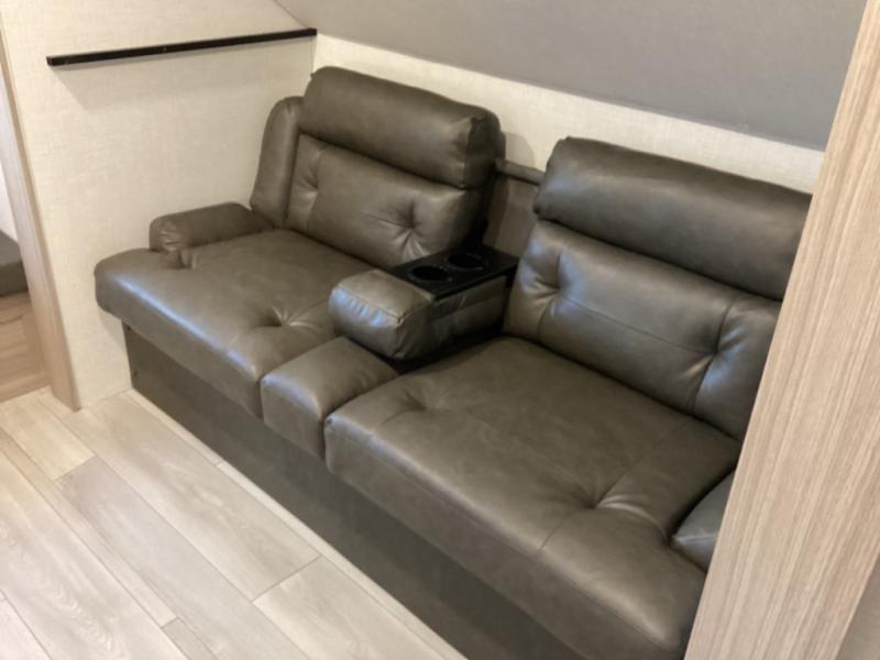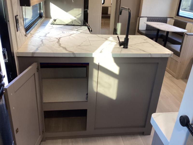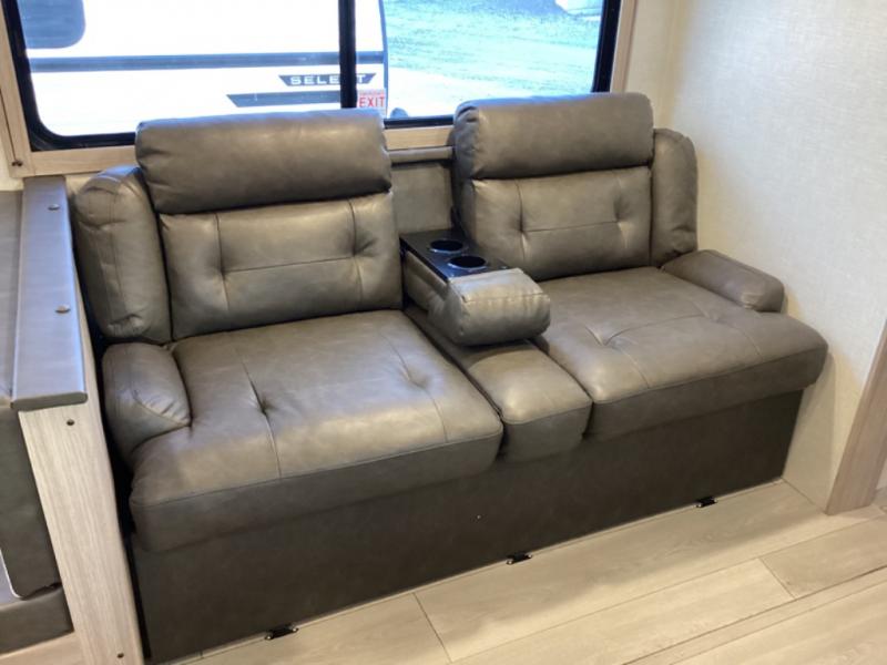 If you've been looking for a travel trailer with plenty of space for your family or group of friends, look no further than this one! The private bunkhouse includes two bunks, plus a third bunk across the room and a jiffy sofa below. There is also a bench seat here, and the full bath is close by for convenience. Everyone can gather in the main living area at the 80" U-shaped dinette, and there is a 64" sofa here for more seating space. If the weather is nice, head outdoors to relax under the 20' power awning with LED lights as the cook prepares dinner on the outside griddle!