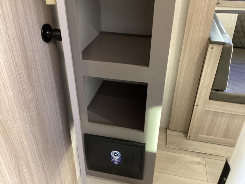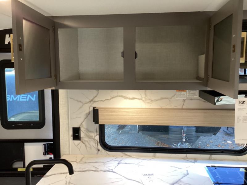 Each Sportsmen SE travel trailer and toy hauler by KZ is constructed with KZ exclusive tough shield exterior metal, a one-piece seamless walk-on Tufflex roofing material, and diamond plate rock guard to protect your unit from road debris. You will appreciate the extra large baggage doors for stowing away your gear when not in use, and tinted windows to help keep the harmful sun rays out plus keeping it cooler inside. Some of the exterior conveniences found in the mandatory Advantage Package are the solid folding steps with a large folding grab handle for easy entry and exit, a full glass friction hinged entry door, plus an exterior shower for your pets or to rinse off before you head inside. You'll also appreciate the nitrogen-filled tires, solar and backup camera prep, plus a Leash Latch with a bonus beverage opener. You'll feel right at home inside with linoleum flooring throughout, a 13,500 BTU air conditioner, large overhead cabinets, a shower surround, and much more!