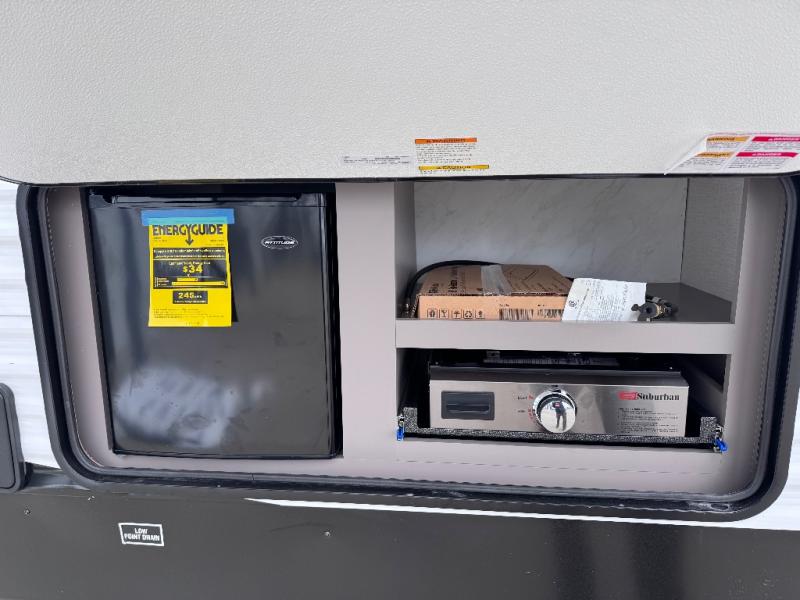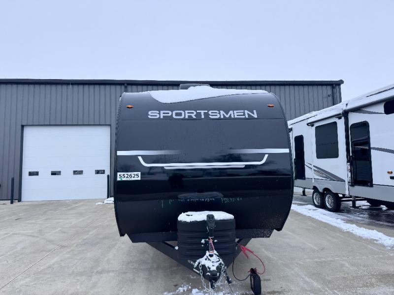 Each Sportsmen SE travel trailer and toy hauler by KZ is constructed with KZ exclusive tough shield exterior metal, a one-piece seamless walk-on Tufflex roofing material, and diamond plate rock guard to protect your unit from road debris. You will appreciate the extra large baggage doors for stowing away your gear when not in use, and tinted windows to help keep the harmful sun rays out plus keeping it cooler inside. Some of the exterior conveniences found in the mandatory Advantage Package are the solid folding steps with a large folding grab handle for easy entry and exit, a full glass friction hinged entry door, plus an exterior shower for your pets or to rinse off before you head inside. You'll also appreciate the nitrogen-filled tires, solar and backup camera prep, plus a Leash Latch with a bonus beverage opener. You'll feel right at home inside with linoleum flooring throughout, a 13,500 BTU air conditioner, large overhead cabinets, a shower surround, and much more!