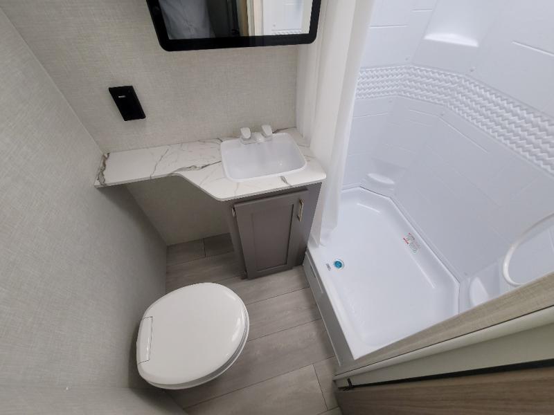 Each Sportsmen SE travel trailer and toy hauler by KZ is constructed with KZ exclusive tough shield exterior metal, a one-piece seamless walk-on Tufflex roofing material, and diamond plate rock guard to protect your unit from road debris. You will appreciate the extra large baggage doors for stowing away your gear when not in use, and tinted windows to help keep the harmful sun rays out plus keeping it cooler inside. Some of the exterior conveniences found in the mandatory Advantage Package are the solid folding steps with a large folding grab handle for easy entry and exit, a full glass friction hinged entry door, plus an exterior shower for your pets or to rinse off before you head inside. You'll also appreciate the nitrogen-filled tires, solar and backup camera prep, plus a Leash Latch with a bonus beverage opener. You'll feel right at home inside with linoleum flooring throughout, a 13,500 BTU air conditioner, large overhead cabinets, a shower surround, and much more!