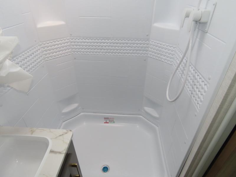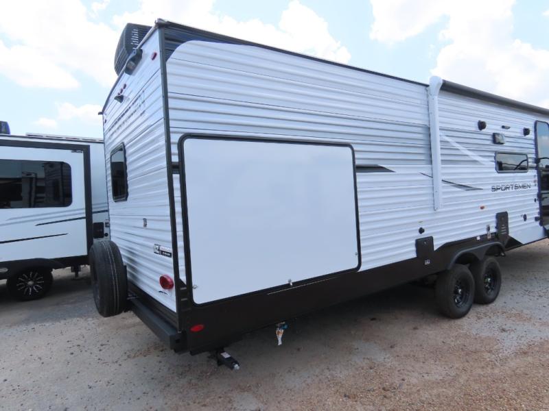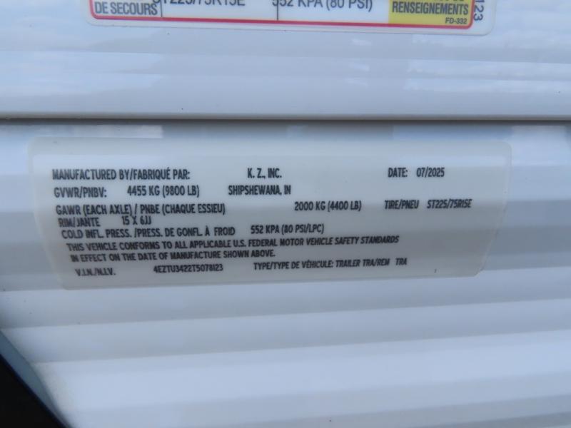 Each Sportsmen SE travel trailer and toy hauler by KZ is constructed with KZ exclusive tough shield exterior metal, a one-piece seamless walk-on Tufflex roofing material, and diamond plate rock guard to protect your unit from road debris. You will appreciate the extra large baggage doors for stowing away your gear when not in use, and tinted windows to help keep the harmful sun rays out plus keeping it cooler inside. Some of the exterior conveniences found in the mandatory Advantage Package are the solid folding steps with a large folding grab handle for easy entry and exit, a full glass friction hinged entry door, plus an exterior shower for your pets or to rinse off before you head inside. You'll also appreciate the nitrogen-filled tires, solar and backup camera prep, plus a Leash Latch with a bonus beverage opener. You'll feel right at home inside with linoleum flooring throughout, a 13,500 BTU air conditioner, large overhead cabinets, a shower surround, and much more!