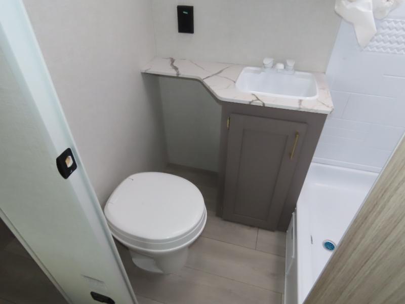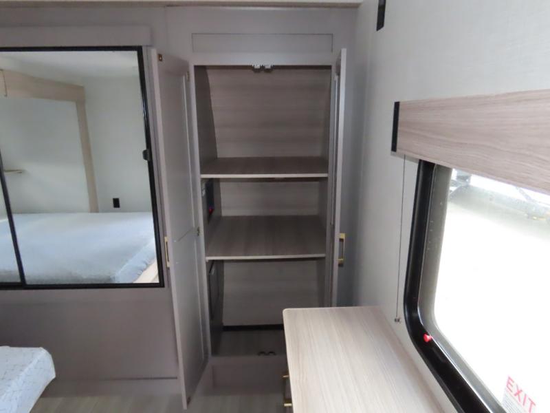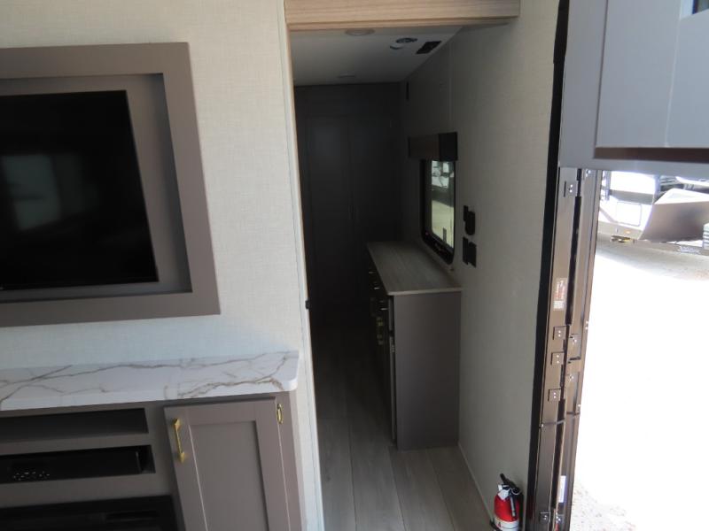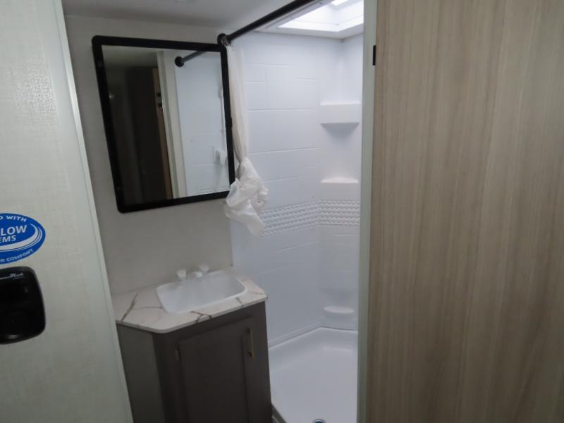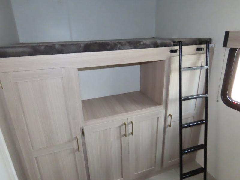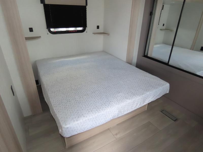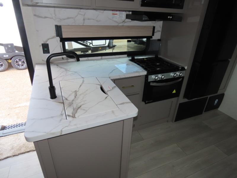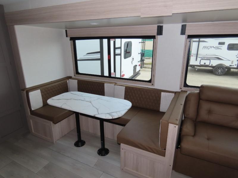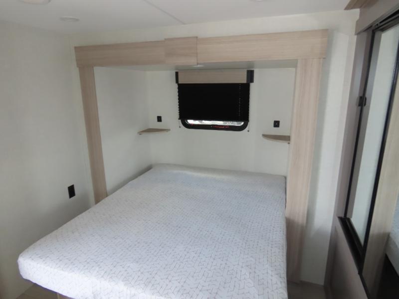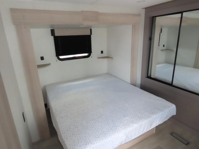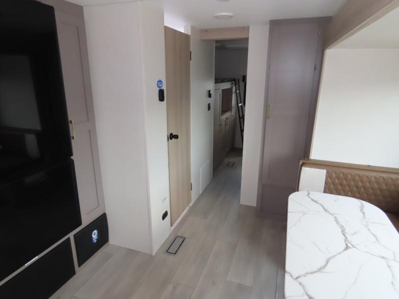 If you've been looking for a travel trailer with plenty of space for your family or group of friends, look no further than this one! The private bunkhouse includes a bunk/closet plus a jackknife sofa with a hinge bunk above. And the full bath is close by for convenience. Everyone can gather in the main living area at the U-shaped dinette, and there is a sofa here for more seating space. If the weather is nice, head outdoors to relax under the 20' power awning with LED lights as the cook prepares dinner on the outside griddle!