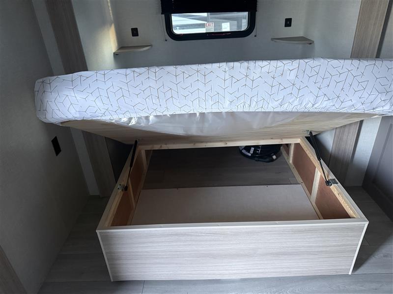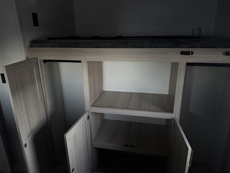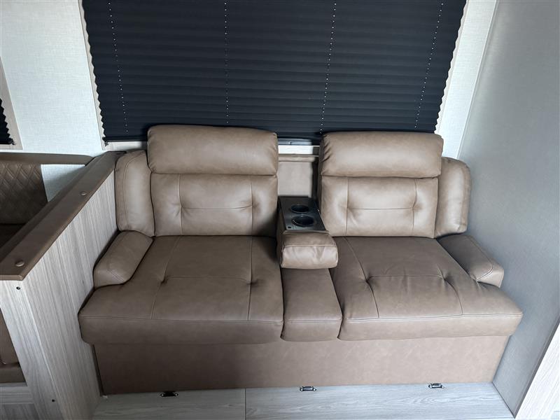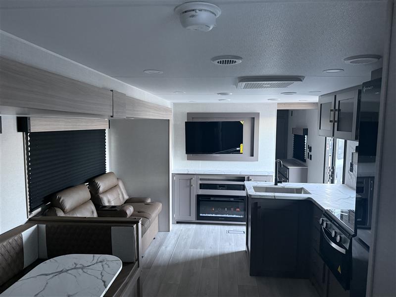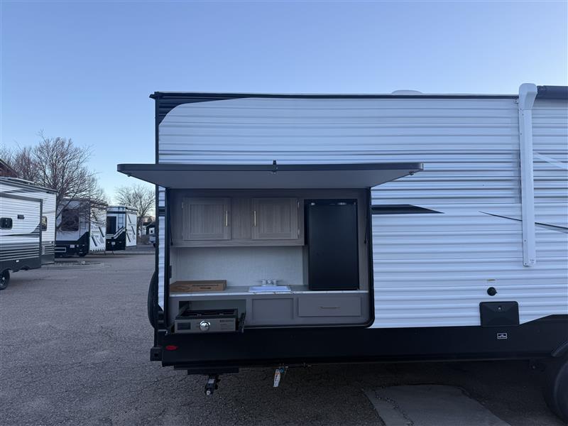 If you've been looking for a travel trailer with plenty of space for your family or group of friends, look no further than this one! The private bunkhouse includes a bunk/closet plus a jackknife sofa with a hinge bunk above. And the full bath is close by for convenience. Everyone can gather in the main living area at the U-shaped dinette, and there is a sofa here for more seating space. If the weather is nice, head outdoors to relax under the 20' power awning with LED lights as the cook prepares dinner on the outside griddle!