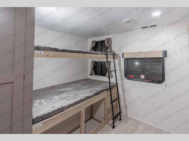 If you've been looking for a travel trailer with plenty of space for your family or group of friends, look no further! The private bunkhouse includes a set of bunks plus a jackknife sofa with a hinge bunk above. Everyone can gather in the main living area at the booth dinette, and there is a second jackknife sofa here for more seating while you watch a movie cozied up by the fireplace.You will love how spacious is the front bedroom that includes tons of storage options featuring a large wardrobe, a dresser and even storage with washer and dryer prep! If the weather is nice, head outdoors to relax under the 16' power awning as the cook prepares dinner on the outside griddle!