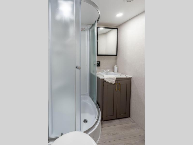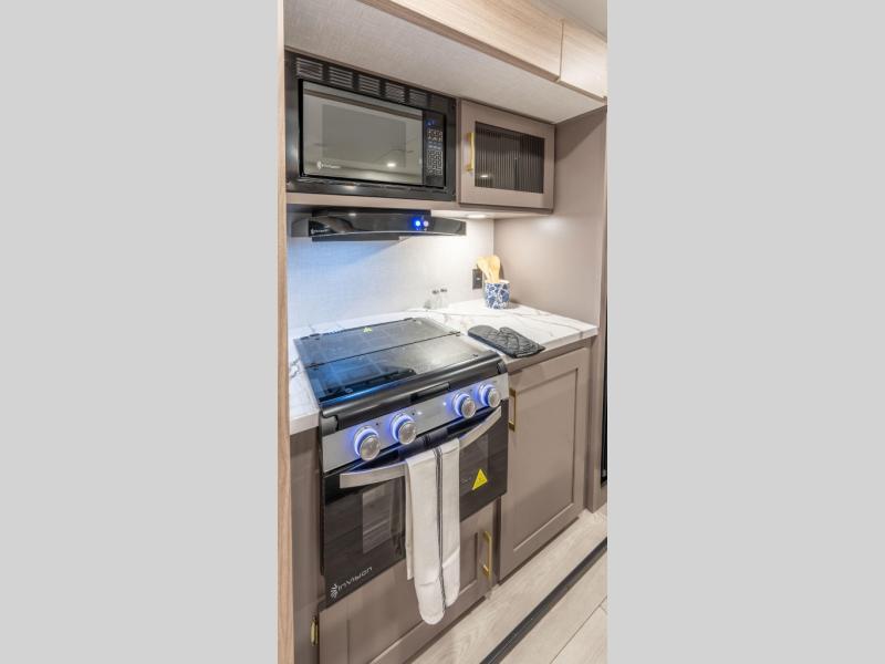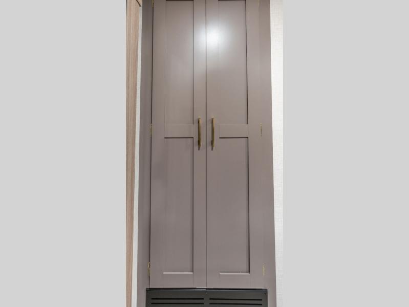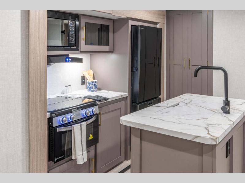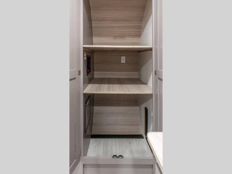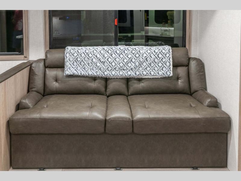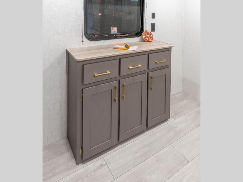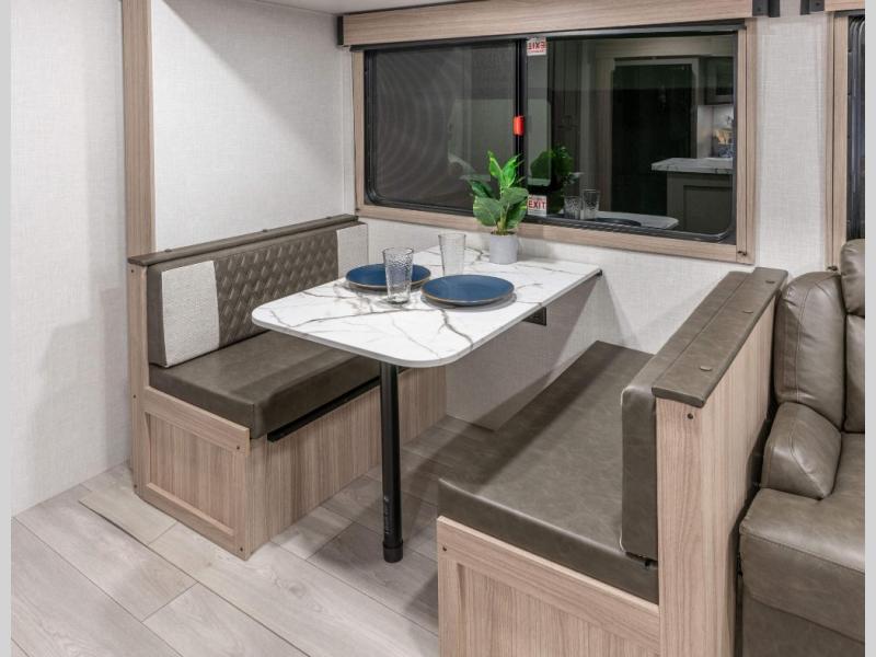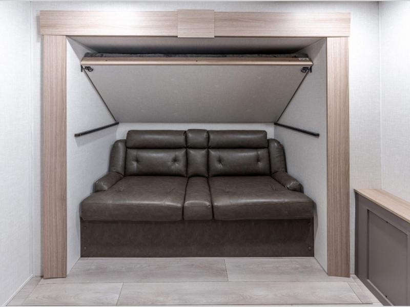 If you've been looking for a travel trailer with plenty of space for your family or group of friends, look no further! The private bunkhouse includes a set of bunks plus a jackknife sofa with a hinge bunk above. Everyone can gather in the main living area at the booth dinette, and there is a second jackknife sofa here for more seating while you watch a movie cozied up by the fireplace.You will love how spacious is the front bedroom that includes tons of storage options featuring a large wardrobe, a dresser and even storage with washer and dryer prep! If the weather is nice, head outdoors to relax under the 16' power awning as the cook prepares dinner on the outside griddle!