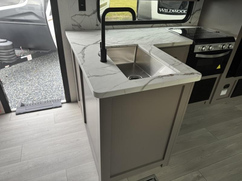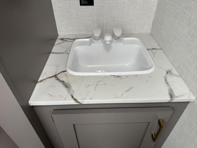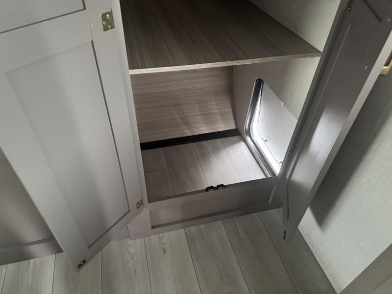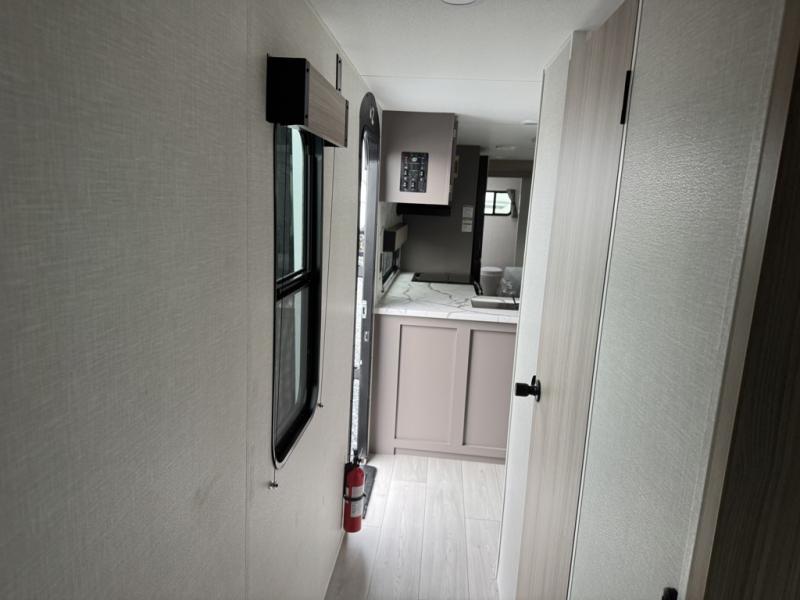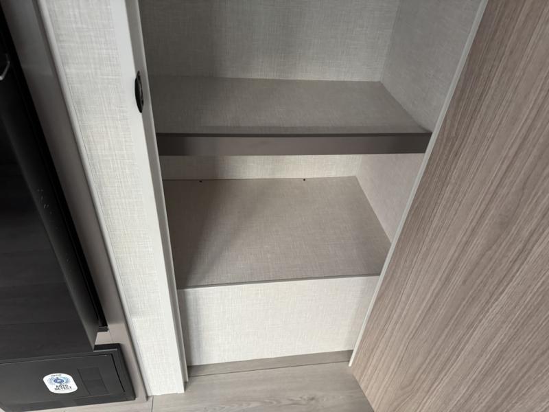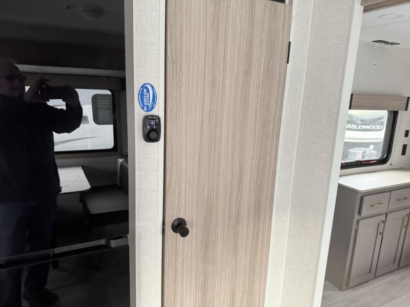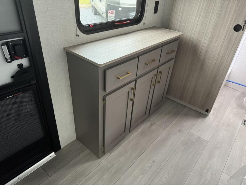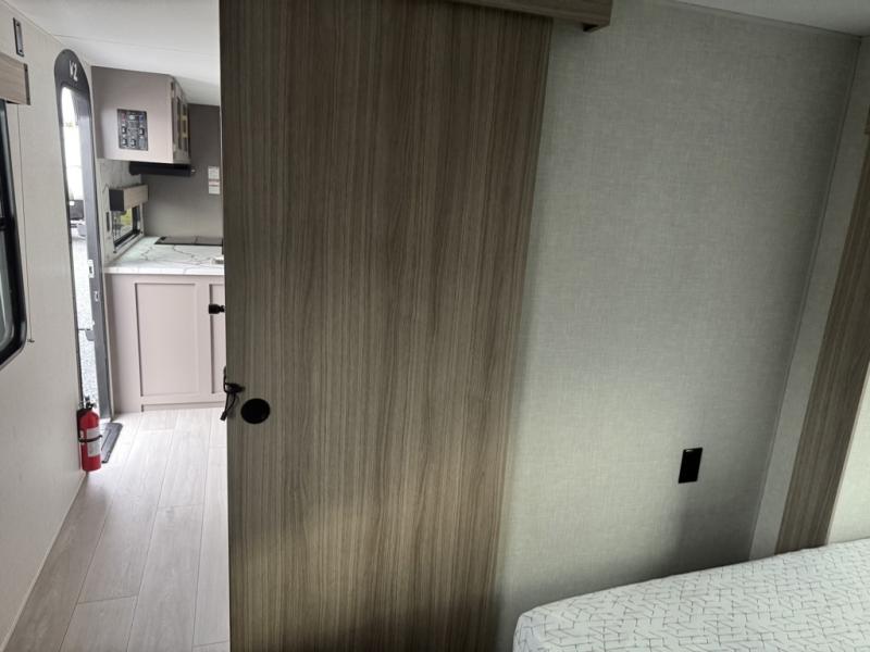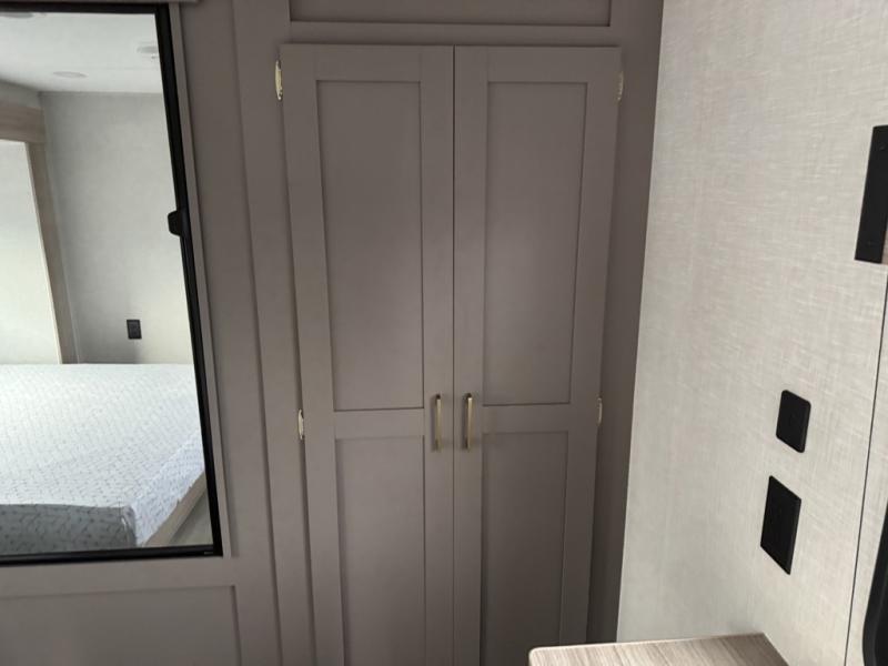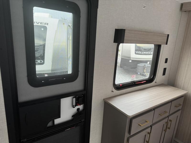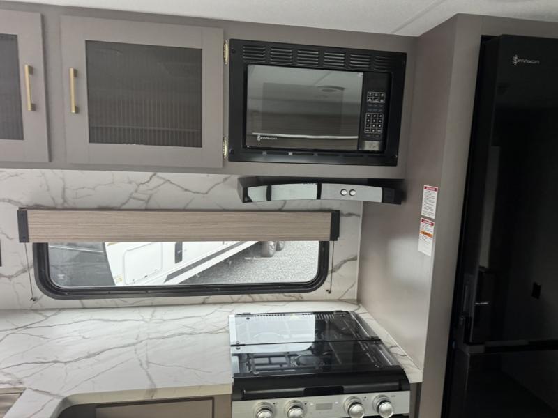 If you've been looking for a travel trailer with plenty of space for your family or group of friends, look no further! There is space for everyone in this model, there are two private bedrooms and each have queen beds to invite even more guests to jump on the adventure. You will admire the amount of storage you will have in each bedroom featuring stunning dressers. Everyone can gather in the main living area at the booth dinette, there is also a jackknife sofa here for more seating while you watch a movie cozied up by the fireplace. When it is time to wind down you will love the two full bathrooms on each side of the RV so no one has to worry about taking turns!