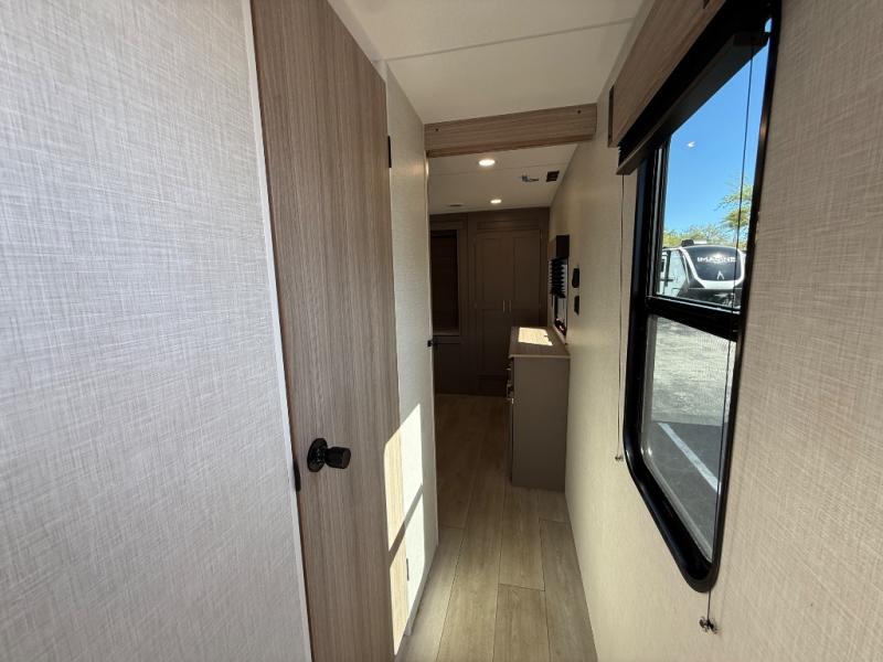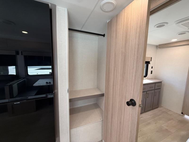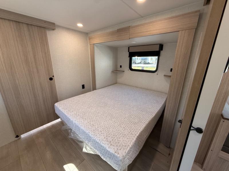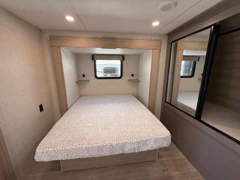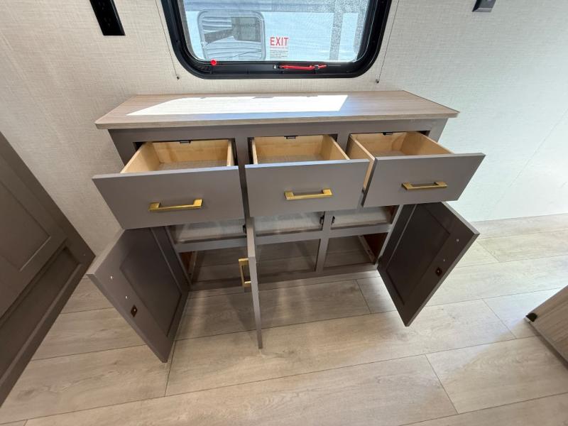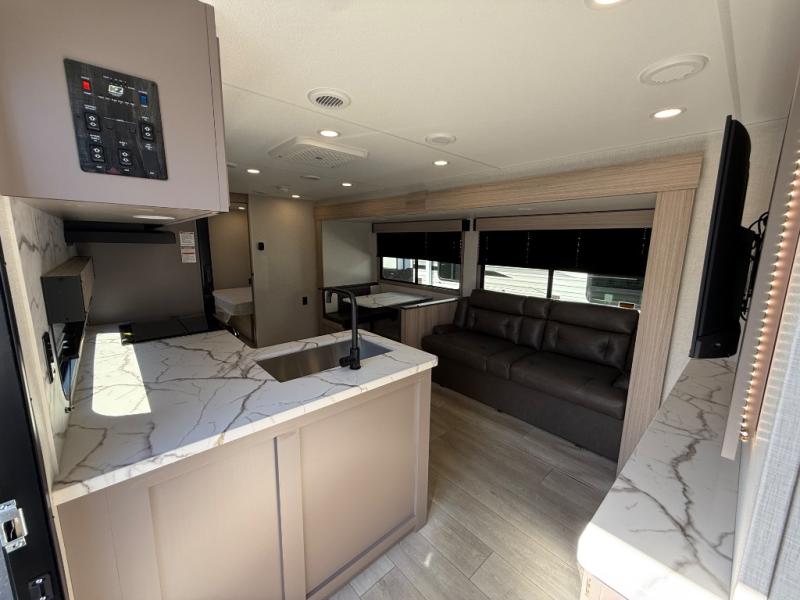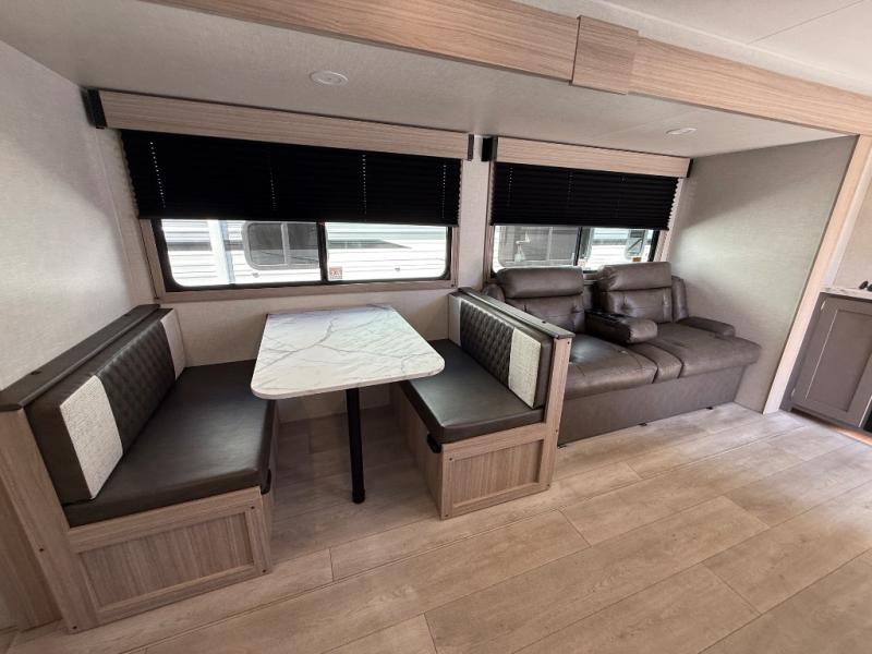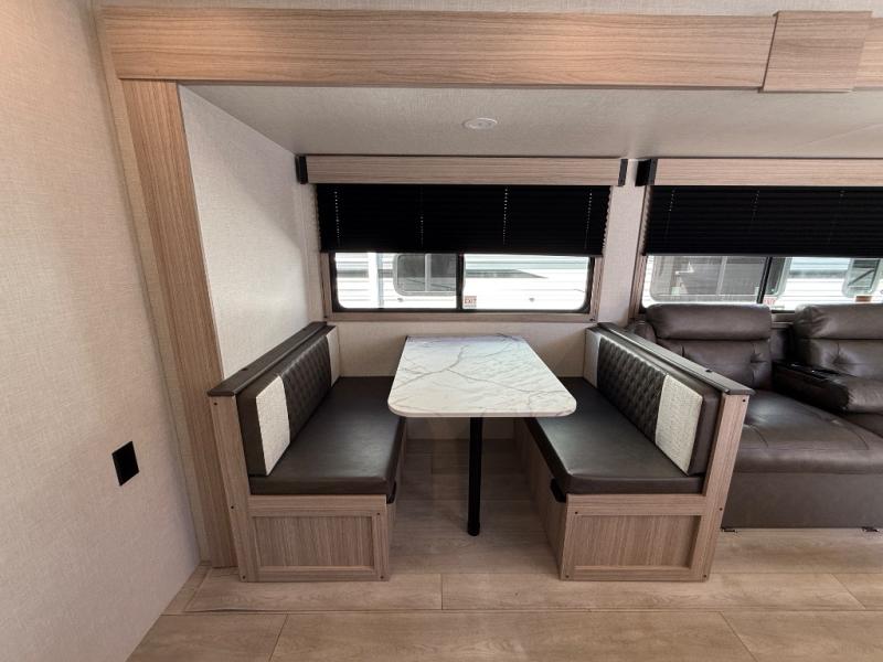 Step inside and experience a thoughtfully crafted interior designed for comfort and versatility. The rear bunkhouse (DBKSE) provides ample sleeping space for kids, guests, or extended family, while the front master suite offers a walk-around king or queen bed, wardrobe storage, and overhead cabinets, creating a private retreat after a day of adventure. The large slide-out living area expands your space for lounging, dining, and entertainment, making every moment inside as enjoyable as your time outdoors.