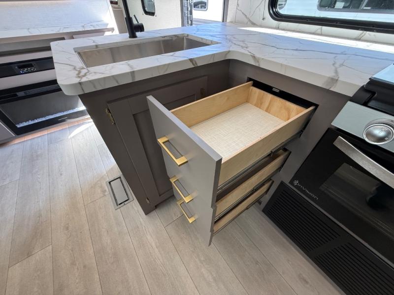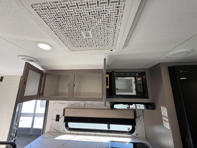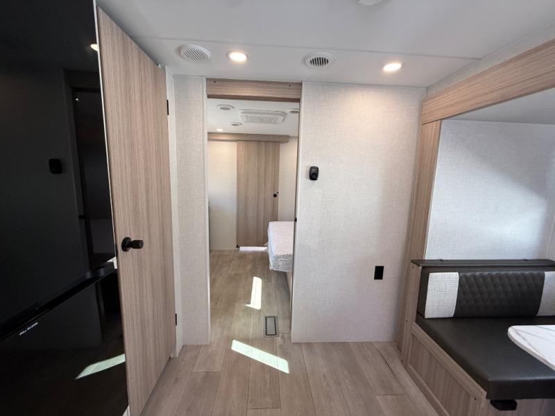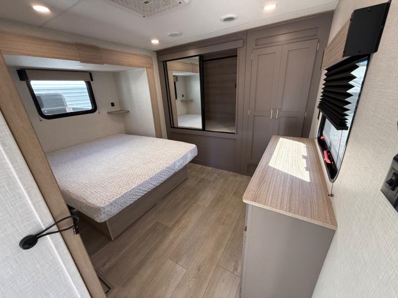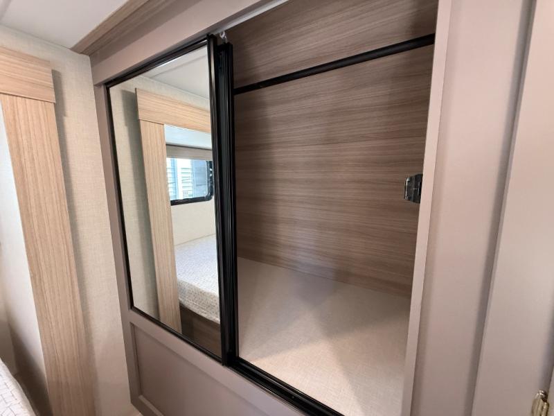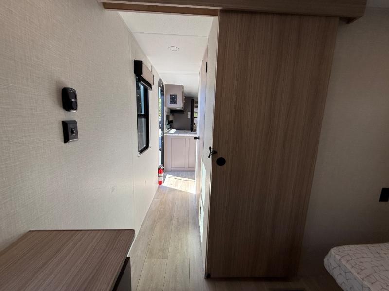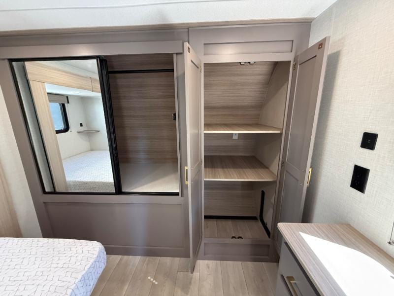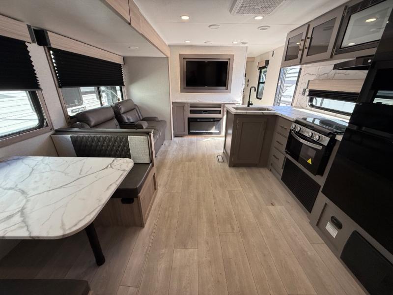 Step inside and experience a thoughtfully crafted interior designed for comfort and versatility. The rear bunkhouse (DBKSE) provides ample sleeping space for kids, guests, or extended family, while the front master suite offers a walk-around king or queen bed, wardrobe storage, and overhead cabinets, creating a private retreat after a day of adventure. The large slide-out living area expands your space for lounging, dining, and entertainment, making every moment inside as enjoyable as your time outdoors.