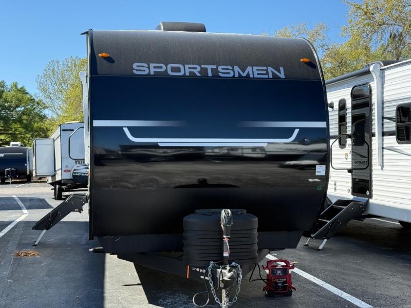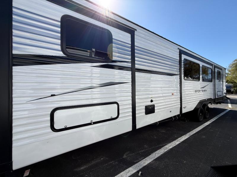 Outside, the Sportsmen SE 383DBKSE continues to impress with a power awning, exterior storage compartments, and rugged construction designed for countless adventures. Lightweight and easy to tow for a unit of this size, it allows you to access campgrounds, parks, and scenic backroads with ease, giving you the freedom to explore anywhere.