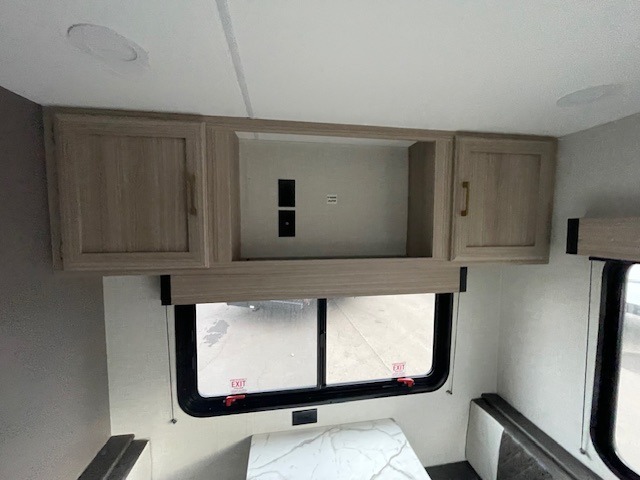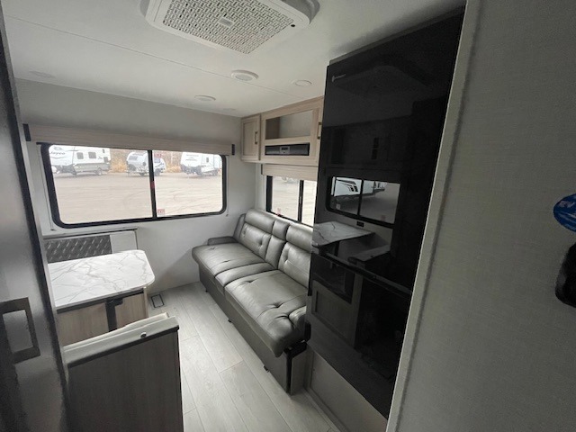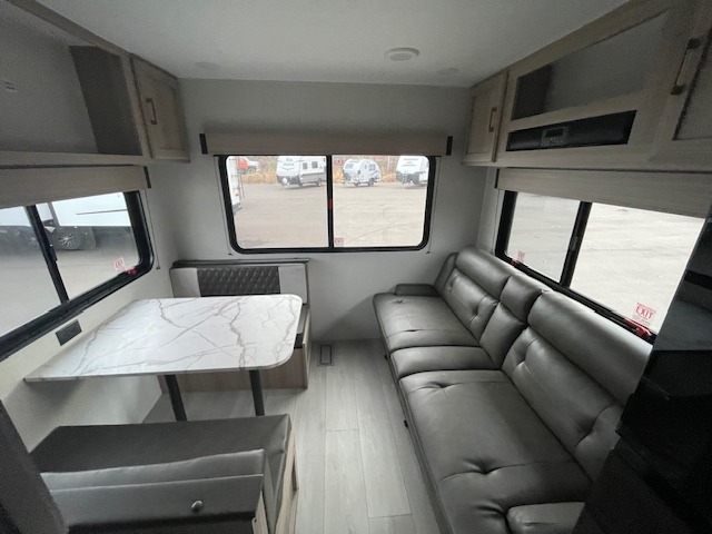 Enjoy your time at the campground in this travel trailer that can sleep four to five each night! Once you arrive at your site, you can unload the pass-thru storage, put out the 18' power awning, then head inside to make lunch on the cooktop. There is a 41" booth dinette to dine at and a 70" jackknife sofa to relax on after dinner. A full bath includes a 30" x 36" shower to freshen up after a long day outdoors, and a queen bed up front will have you feeling right at home. This unit also includes dual wardrobes to keep your clothes organized, a kitchen pantry for snacks, and a pass-thru storage for hiking gear!
