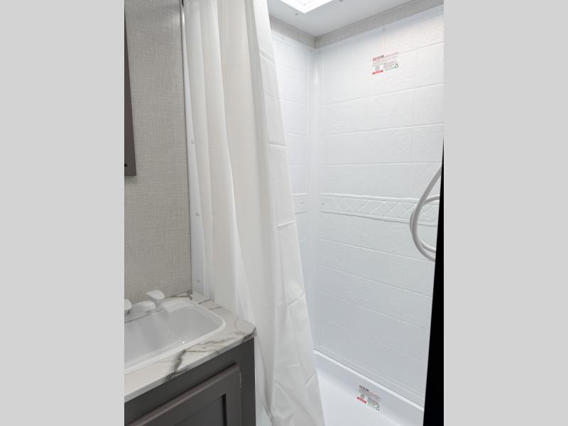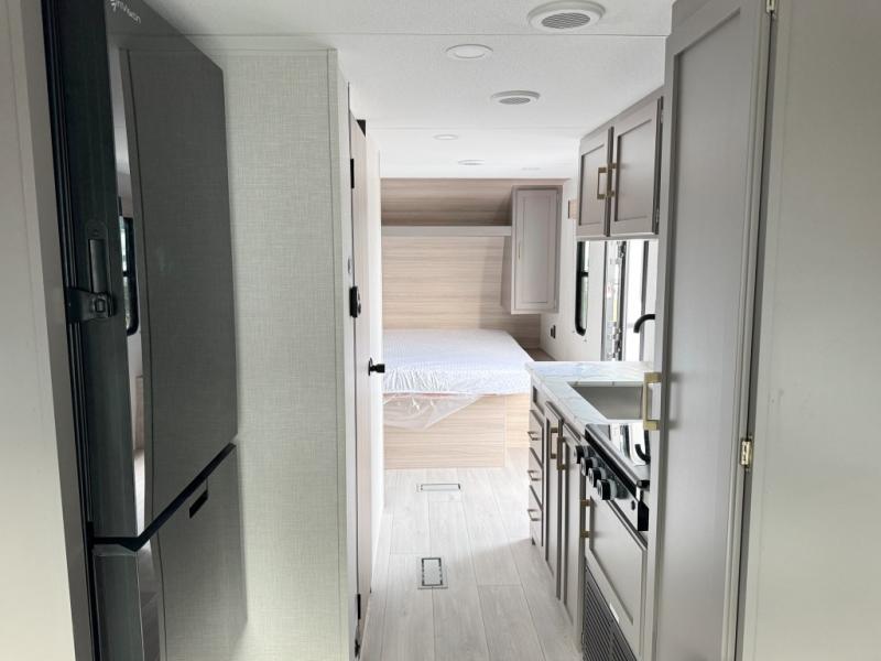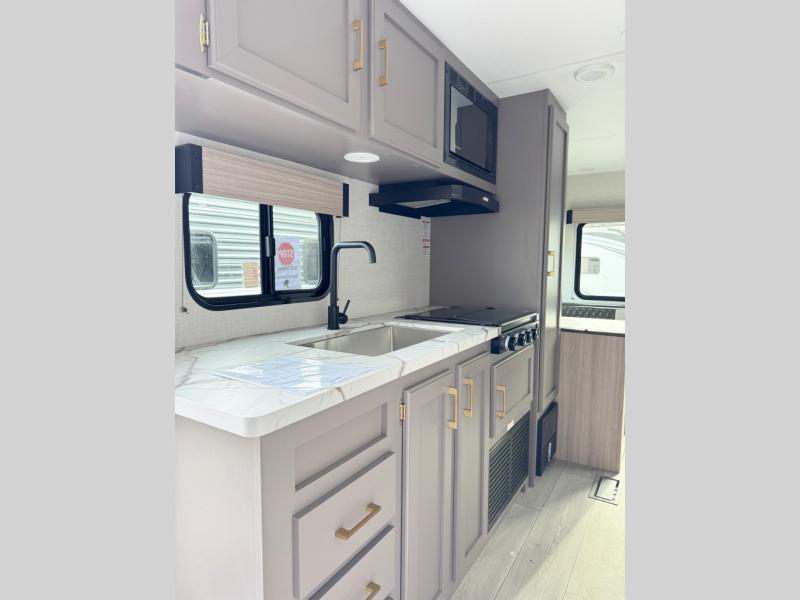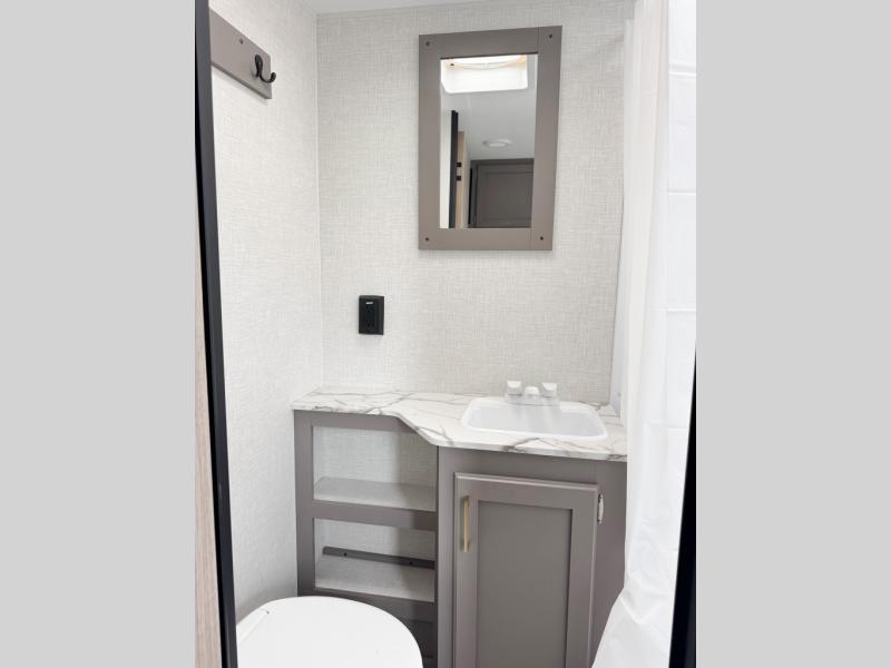 With any Sportsmen Select travel trailer by KZ, you will enjoy premium features at an affordable price, making them perfect for rookie RVers! Each model is constructed with an aerodynamic front profile with a smooth metal front for better fuel efficiency, and the nitrogen filled tires and power tongue jack will make towing easier than ever. There are is also a Key-Alike system for entry and baggage doors to keep your belongings secure, plus backup camera prep and solar roof prep means you can easily add these features to make camping that much smoother. An omnidirectional HDTV antenna with Wi-Fi prep will give you the option to stay connected as you camp, and a multi-media sound bar stereo with Bluetooth, HDMI and USB charge will ensure you'll never go bored on rainy days. The interior of these travel trailers include seamless countertops with a deep undermount stainless steel kitchen sink, a black residential kitchen faucet, wider pocket/passage doors, and residential grade linoleum.