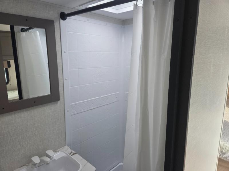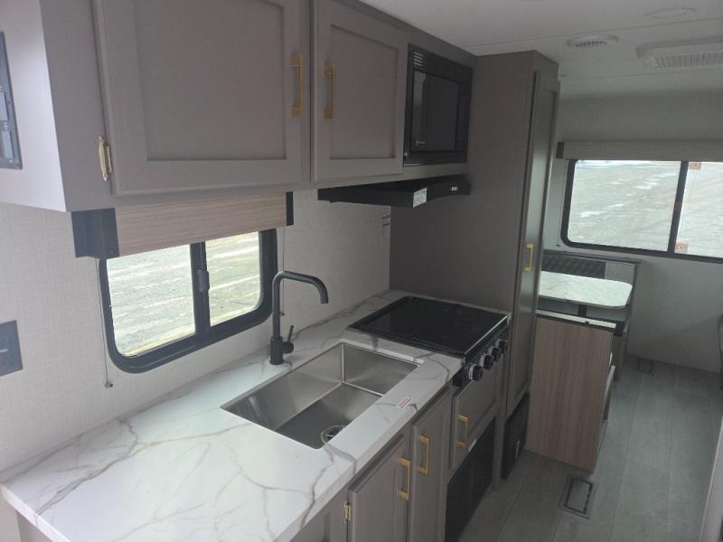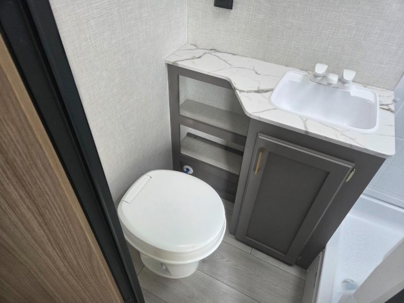 With any Sportsmen Select travel trailer by KZ, you will enjoy premium features at an affordable price, making them perfect for rookie RVers! Each model is constructed with an aerodynamic front profile with a smooth metal front for better fuel efficiency, and the nitrogen filled tires and power tongue jack will make towing easier than ever. There are is also a Key-Alike system for entry and baggage doors to keep your belongings secure, plus backup camera prep and solar roof prep means you can easily add these features to make camping that much smoother. An omnidirectional HDTV antenna with Wi-Fi prep will give you the option to stay connected as you camp, and a multi-media sound bar stereo with Bluetooth, HDMI and USB charge will ensure you'll never go bored on rainy days. The interior of these travel trailers include seamless countertops with a deep undermount stainless steel kitchen sink, a black residential kitchen faucet, wider pocket/passage doors, and residential grade linoleum.