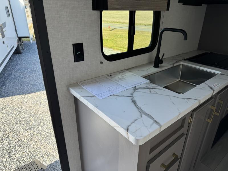 With any Sportsmen Select travel trailer by KZ, you will enjoy premium features at an affordable price, making them perfect for rookie RVers! Each model is constructed with an aerodynamic front profile with a smooth metal front for better fuel efficiency, and the nitrogen filled tires and power tongue jack will make towing easier than ever. There is also a Key-Alike system for entry and baggage doors to keep your belongings secure, plus backup camera prep and solar roof prep means you can easily add these features to make camping that much smoother. An omnidirectional HDTV antenna with Wi-Fi prep will give you the option to stay connected as you camp, and a multi-media sound bar stereo with Bluetooth, HDMI and USB charge will ensure you'll never go bored on rainy days. The interior of these travel trailers include seamless countertops with a deep undermount stainless steel kitchen sink, a black residential kitchen faucet, wider pocket/passage doors, and residential grade linoleum.