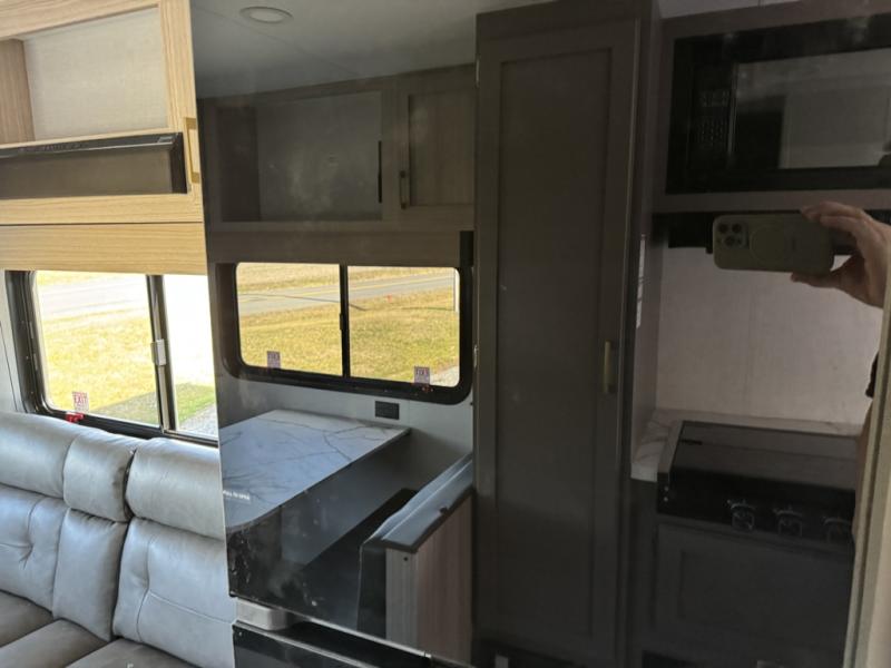 Enjoy your time at the campground in this travel trailer that can sleep four to five each night! Once you arrive at your site, you can unload the pass-thru storage, put out the 18' power awning, then head inside to make lunch on the cooktop. There is a 41" booth dinette to dine at and a 70" jackknife sofa to relax on after dinner. A full bath includes a 30" x 36" shower to freshen up after a long day outdoors, and a queen bed up front will have you feeling right at home. This unit also includes dual wardrobes to keep your clothes organized, a kitchen pantry for snacks, and a pass-thru storage for hiking gear!