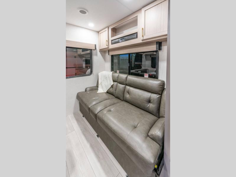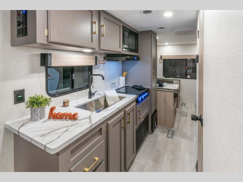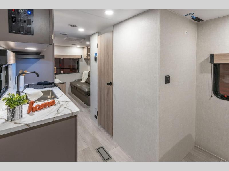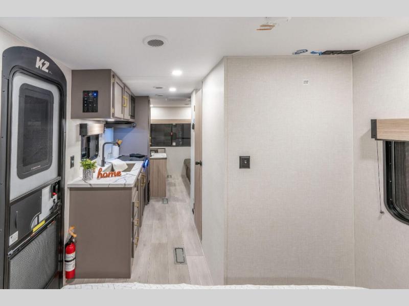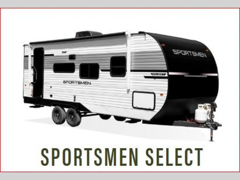 With any Sportsmen Select travel trailer by KZ, you will enjoy premium features at an affordable price, making them perfect for rookie RVers! Each model is constructed with an aerodynamic front profile with a smooth metal front for better fuel efficiency, and the nitrogen filled tires and power tongue jack will make towing easier than ever. There are is also a Key-Alike system for entry and baggage doors to keep your belongings secure, plus backup camera prep and solar roof prep means you can easily add these features to make camping that much smoother. An omnidirectional HDTV antenna with Wi-Fi prep will give you the option to stay connected as you camp, and a multi-media sound bar stereo with Bluetooth, HDMI and USB charge will ensure you'll never go bored on rainy days. The interior of these travel trailers include seamless countertops with a deep undermount stainless steel kitchen sink, a black residential kitchen faucet, wider pocket/passage doors, and residential grade linoleum.