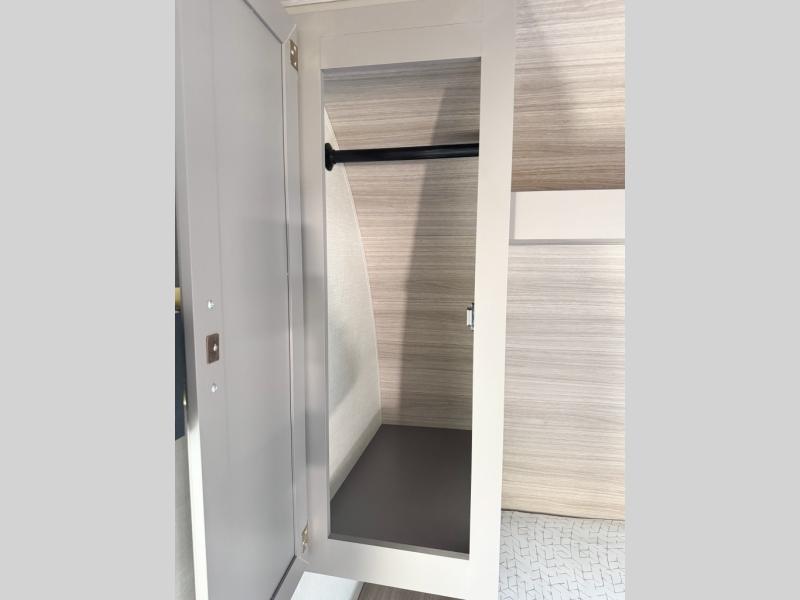 Spend your weekends at the campground in this travel trailer for three happy campers! There is ample space to move around thanks to the jackknife sofa slide out, and you'll love having your own bedroom up front with a queen bed. There are also dual bedside wardrobes and a TV mount if you want to bring along your television. A two burner cooktop and microwave oven will let you make meals each day, and the 10 cu. ft. 12V refrigerator will be perfect for perishables. This unit also includes a full bath onboard so you won't have to use the camp's facilities!