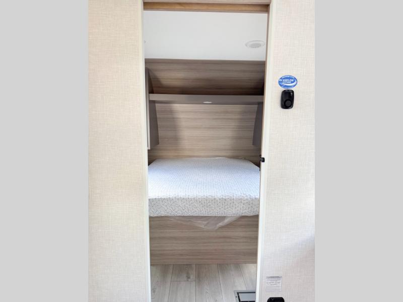 Spend your weekends at the campground in this travel trailer for three happy campers! There is ample space to move around thanks to the jackknife sofa slide out, and you'll love having your own bedroom up front with a queen bed. There are also dual bedside wardrobes and a TV mount if you want to bring along your television. A two burner cooktop and microwave oven will let you make meals each day, and the 10 cu. ft. 12V refrigerator will be perfect for perishables. This unit also includes a full bath onboard so you won't have to use the camp's facilities!