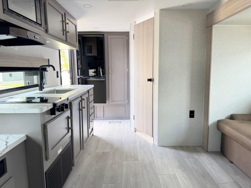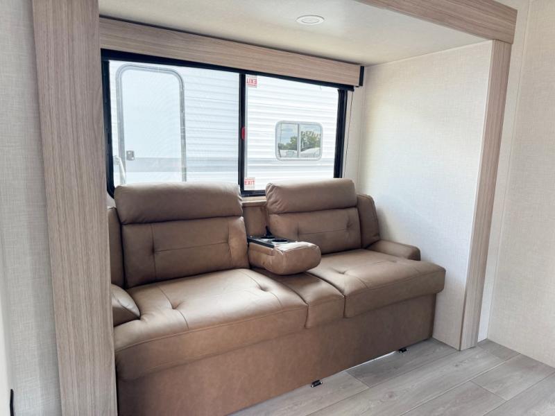 With any Sportsmen Select travel trailer by KZ, you will enjoy premium features at an affordable price, making them perfect for rookie RVers! Each model is constructed with an aerodynamic front profile with a smooth metal front for better fuel efficiency, and the nitrogen filled tires and power tongue jack will make towing easier then ever. There are is also a Key-Alike system for entry and baggage doors to keep your belongings secure, plus backup camera prep and solar roof prep means you can easily add these features to make camping that much smoother. An omnidirectional HDTV antenna with Wi-Fi prep will give you the option to stay connected as you camp, and a multi-media sound bar stereo with Bluetooth, HDMI and USB charge will ensure you'll never go bored on rainy days. The interior of these travel trailers include seamless countertops with a deep undermount stainless steel kitchen sink, a black residential kitchen faucet, wider pocket/passage doors, and residential grade linoleum.