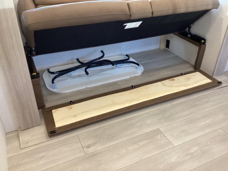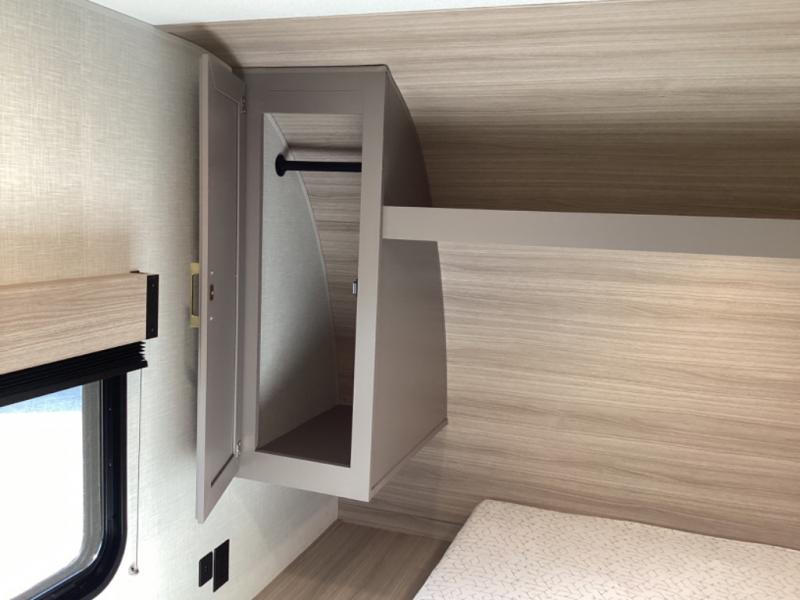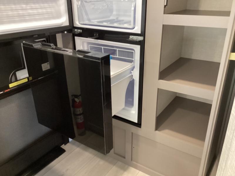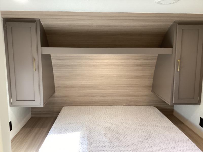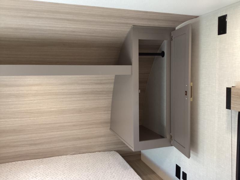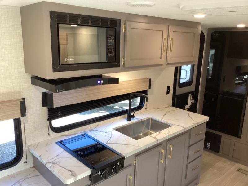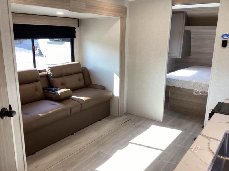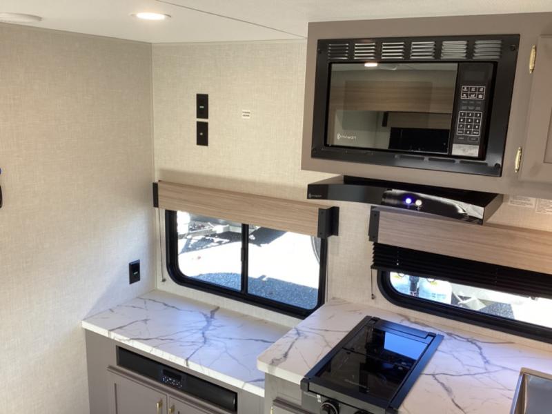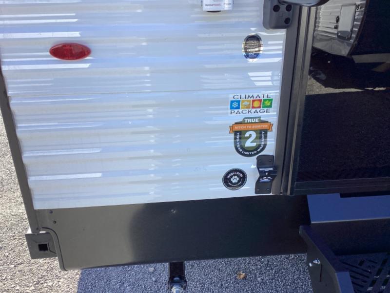 Spend your weekends at the campground in this travel trailer for three happy campers! There is ample space to move around thanks to the jackknife sofa slide out, and you'll love having your own bedroom up front with a queen bed. There are also dual bedside wardrobes and a TV mount if you want to bring along your television. A two burner cooktop and microwave oven will let you make meals each day, and the 10 cu. ft. 12V refrigerator will be perfect for perishables. This unit also includes a full bath onboard so you won't have to use the camp's facilities!