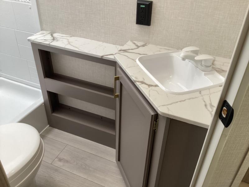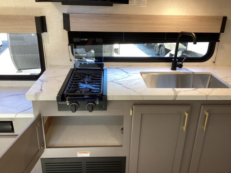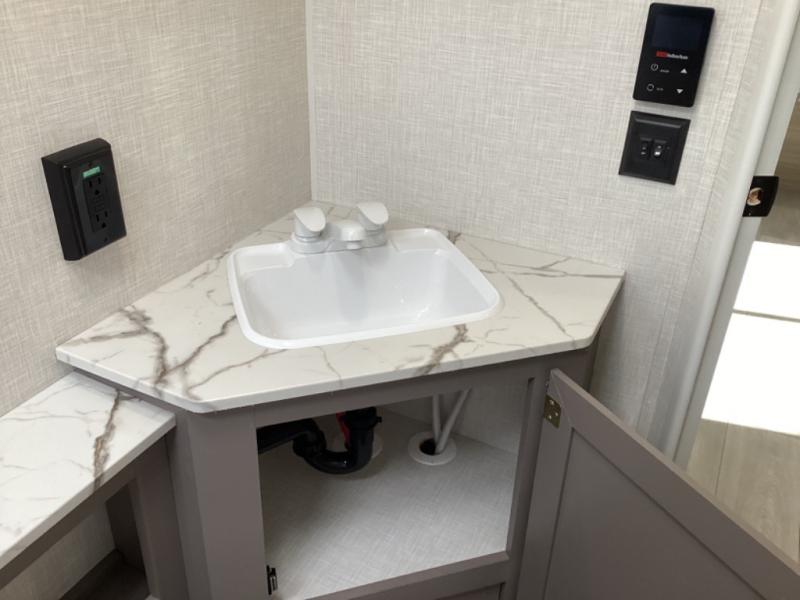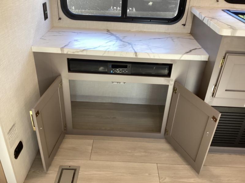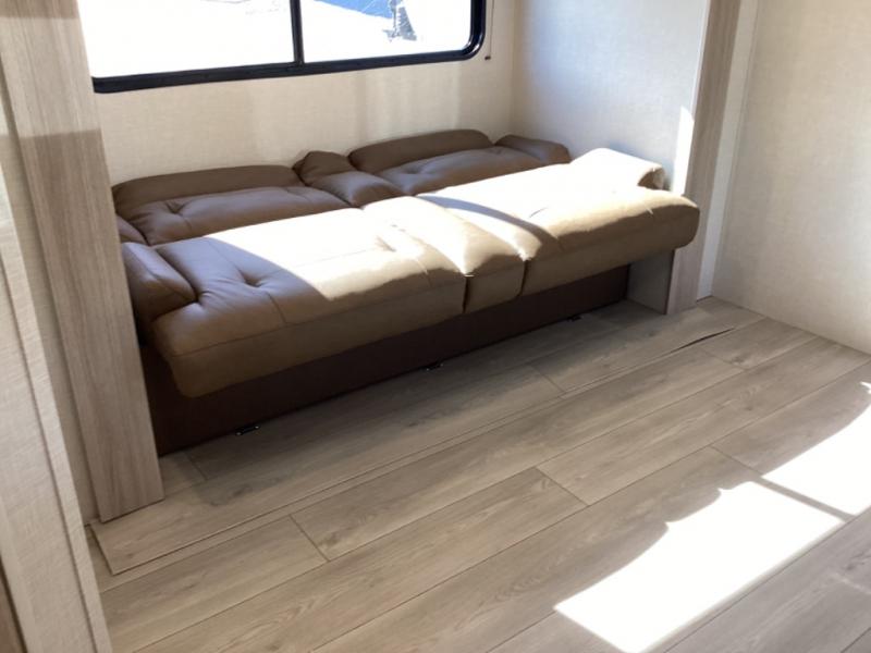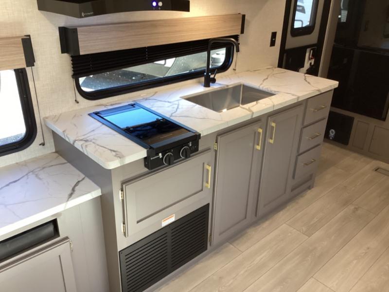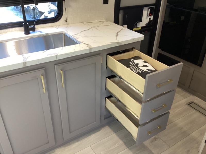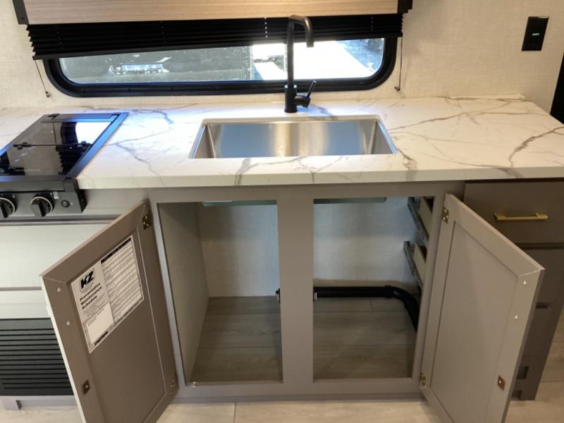 With any Sportsmen Select travel trailer by KZ, you will enjoy premium features at an affordable price, making them perfect for rookie RVers! Each model is constructed with an aerodynamic front profile with a smooth metal front for better fuel efficiency, and the nitrogen filled tires and power tongue jack will make towing easier then ever. There are is also a Key-Alike system for entry and baggage doors to keep your belongings secure, plus backup camera prep and solar roof prep means you can easily add these features to make camping that much smoother. An omnidirectional HDTV antenna with Wi-Fi prep will give you the option to stay connected as you camp, and a multi-media sound bar stereo with Bluetooth, HDMI and USB charge will ensure you'll never go bored on rainy days. The interior of these travel trailers include seamless countertops with a deep undermount stainless steel kitchen sink, a black residential kitchen faucet, wider pocket/passage doors, and residential grade linoleum.