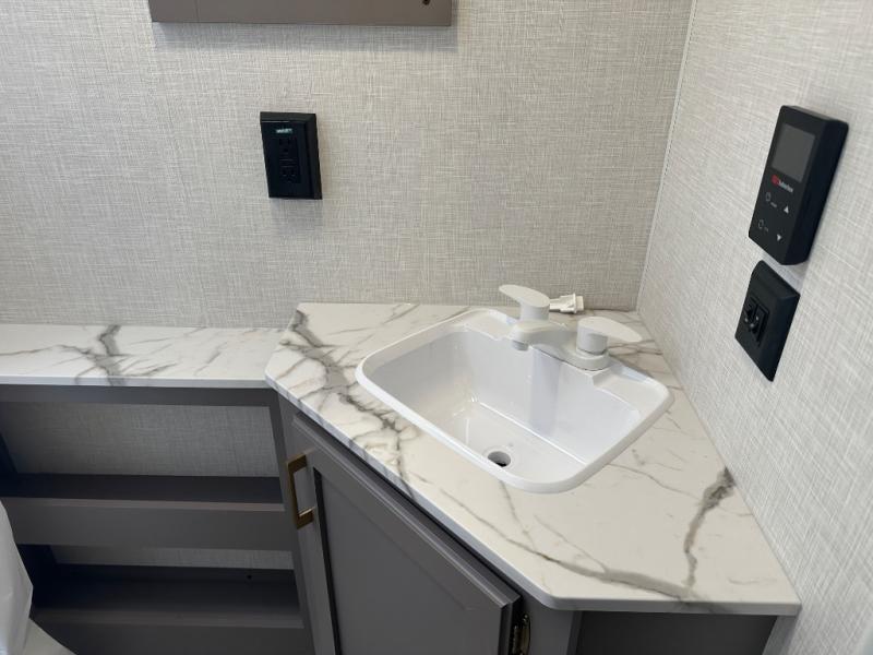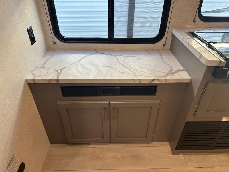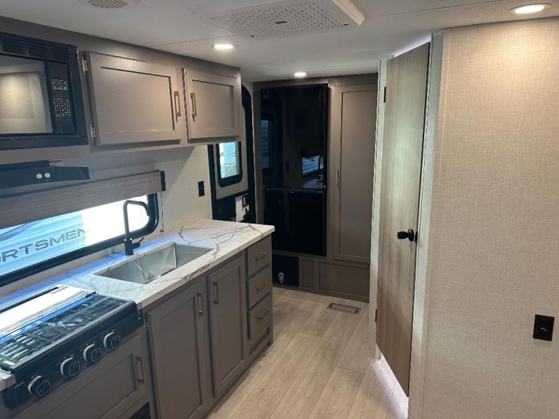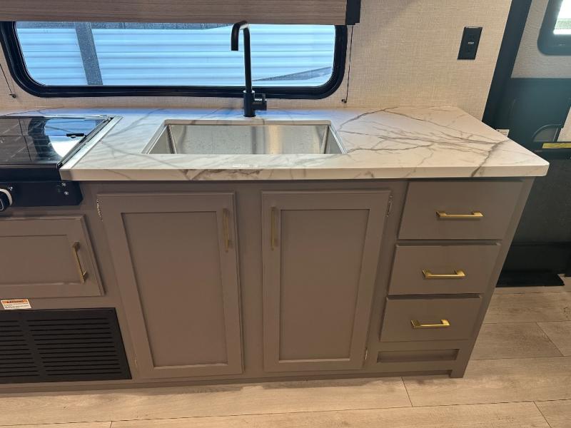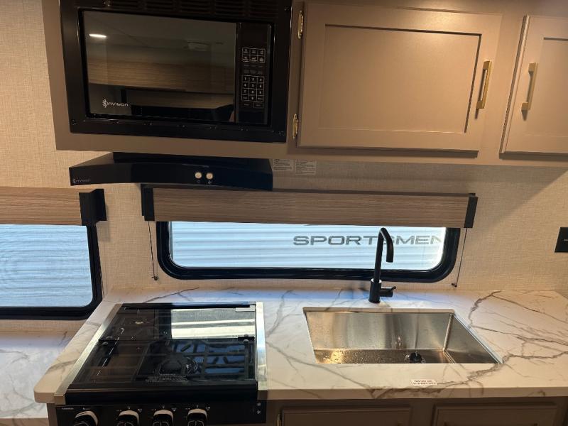 With any Sportsmen Select travel trailer by KZ, you will enjoy premium features at an affordable price, making them perfect for rookie RVers! Each model is constructed with an aerodynamic front profile with a smooth metal front for better fuel efficiency, and the nitrogen filled tires and power tongue jack will make towing easier than ever. There are is also a Key-Alike system for entry and baggage doors to keep your belongings secure, plus backup camera prep and solar roof prep means you can easily add these features to make camping that much smoother. An omnidirectional HDTV antenna with Wi-Fi prep will give you the option to stay connected as you camp, and a multi-media sound bar stereo with Bluetooth, HDMI and USB charge will ensure you'll never go bored on rainy days. The interior of these travel trailers include seamless countertops with a deep undermount stainless steel kitchen sink, a black residential kitchen faucet, wider pocket/passage doors, and residential grade linoleum.