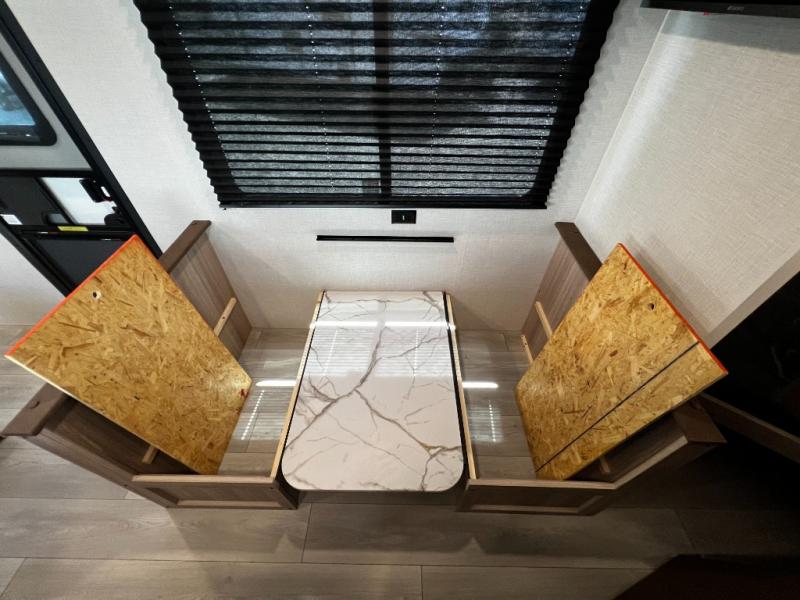 Booth dinette and jackknife sofa convert into extra sleeping space