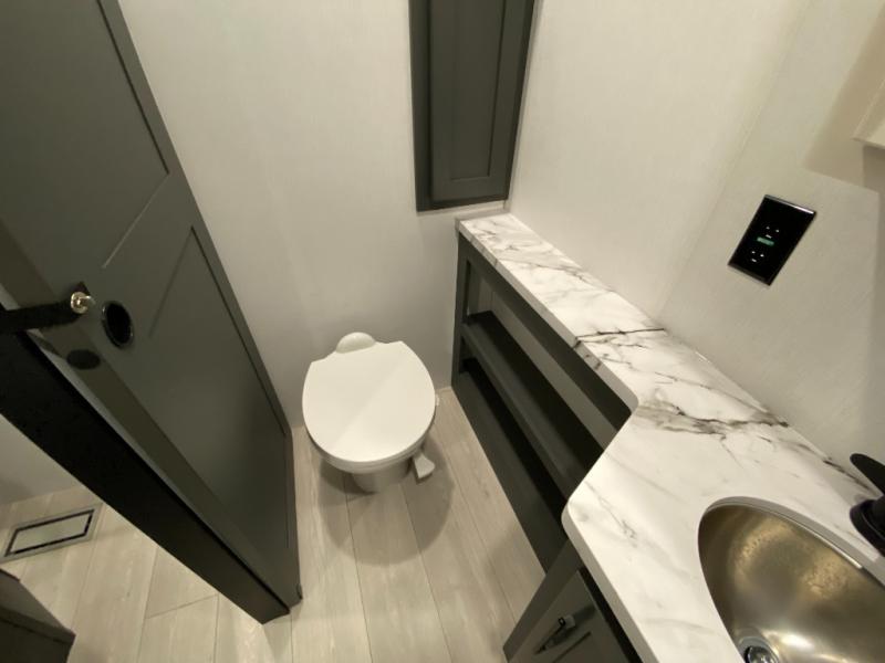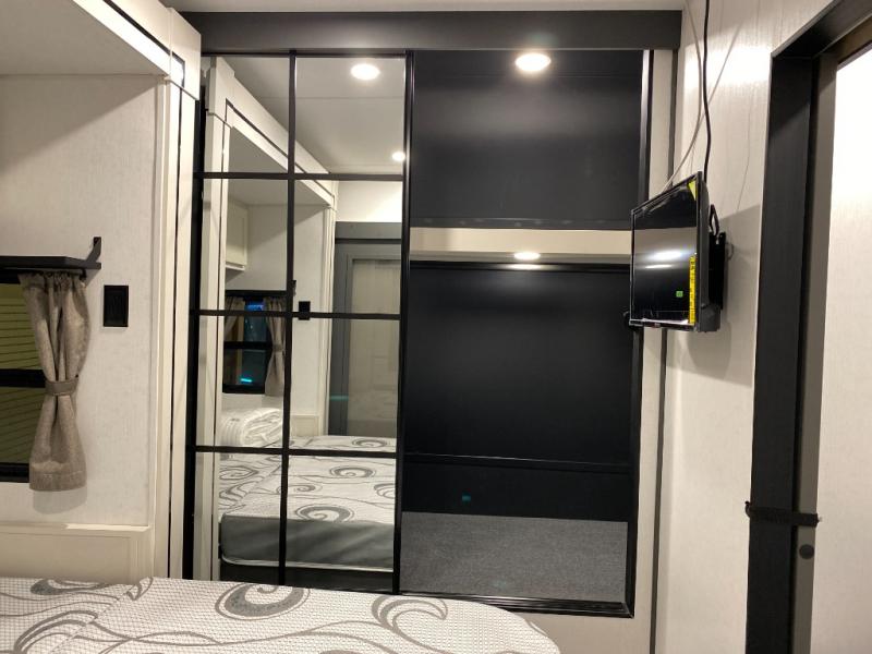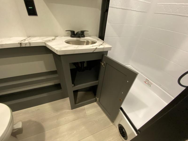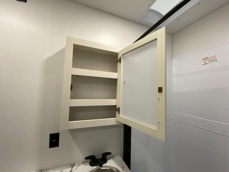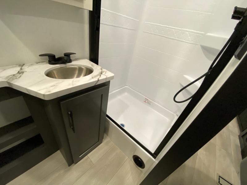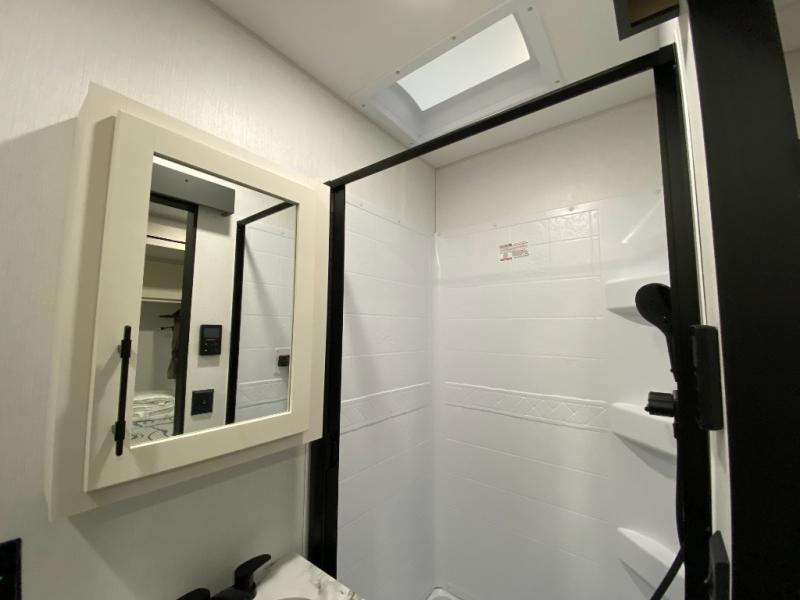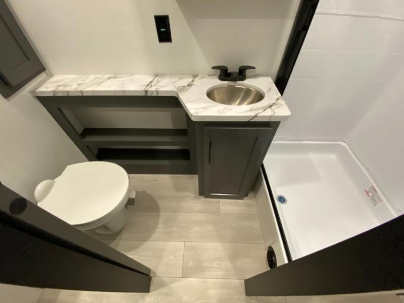 Retreat to the bedroom, where you'll find a plush queen bed, spacious wardrobe, and ample shelving for all your gear. The full bathroom features a generous 30” x 36” shower, perfect for washing away the dirt and grime of a day on the trails.