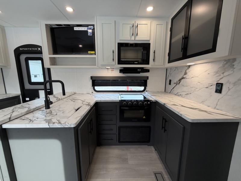 Experience the ultimate in luxury with Sportster X by KZ. Our bold, automotive-inspired design features sleek lighting that turns heads on the highway. Built for comfort and stability, our trailers boast CRE suspension and 6-point electric auto leveling. Stay connected and in control with KZ Engaged, powered by One Control, which features new integrated buttons and a screen. Enjoy year-round camping with our Climate Package, including a heated, insulated, and enclosed underbelly. Immerse yourself in sound with our premium JBL Audio System. Also, this brand offers seamless countertops paired with a deep under mount stainless steel kitchen sink. The Sportster X is dedicated to helping you elevate your adventures and explore the horizon in style.