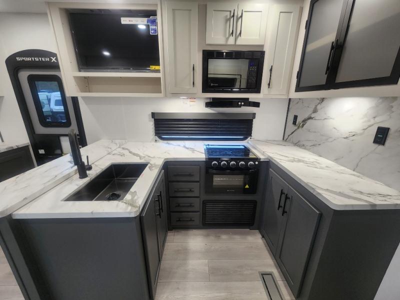 Experience the ultimate in luxury with Sportster X by KZ. Our bold, automotive-inspired design features sleek lighting that turns heads on the highway. Built for comfort and stability, our trailers boast CRE suspension and 6-point electric auto leveling. Stay connected and in control with KZ Engaged, powered by One Control, which features new integrated buttons and a screen. Enjoy year-round camping with our Climate Package, including a heated, insulated, and enclosed underbelly. Immerse yourself in sound with our premium JBL Audio System. Also, this brand offers seamless countertops paired with a deep under mount stainless steel kitchen sink. The Sportster X is dedicated to helping you elevate your adventures and explore the horizon in style.