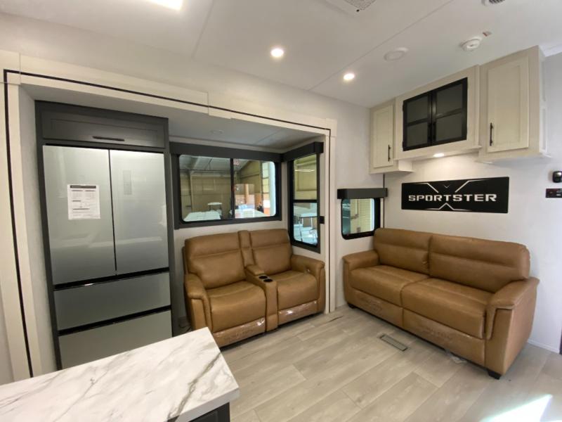 Experience the ultimate in luxury with Sportster X by KZ. Our bold, automotive-inspired design features sleek lighting that turns heads on the highway. Built for comfort and stability, our trailers boast CRE suspension and 6-point electric auto leveling. Stay connected and in control with KZ Engaged, powered by One Control, which features new integrated buttons and a screen. Enjoy year-round camping with our Climate Package, including a heated, insulated, and enclosed underbelly. Immerse yourself in sound with our premium JBL Audio System. Also, this brand offers seamless countertops paired with a deep under mount stainless steel kitchen sink. The Sportster X is dedicated to helping you elevate your adventures and explore the horizon in style.