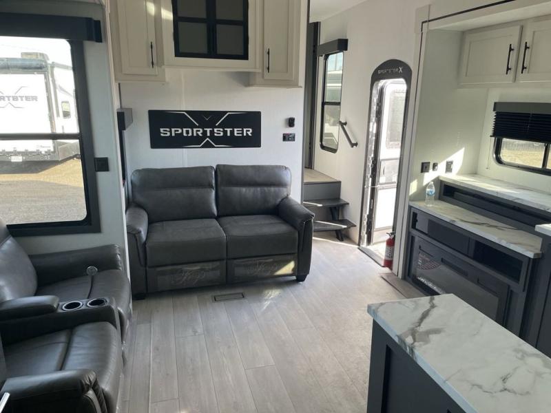 Experience the ultimate in luxury with Sportster X by KZ. Our bold, automotive-inspired front cap with sleek lighting turns heads on the highway, while Equa-Flex suspension and 6-point electric auto leveling on fifth wheels (electric auto leveling on travel trailers) help keep your rig stable and comfortable wherever you park. Stay connected and in control with KZ Engage powered by OneControl, featuring new integrated buttons and a screen to monitor and manage key systems with ease. Enjoy year-round camping thanks to the Climate Package with a heated, insulated, enclosed underbelly, and immerse yourself in rich sound with the JBL audio system. Inside, you’ll also appreciate seamless countertops paired with a deep undermount stainless steel kitchen sink, giving Sportster X a true residential feel. The Sportster X is dedicated to helping you elevate your adventures and explore the horizon in style.