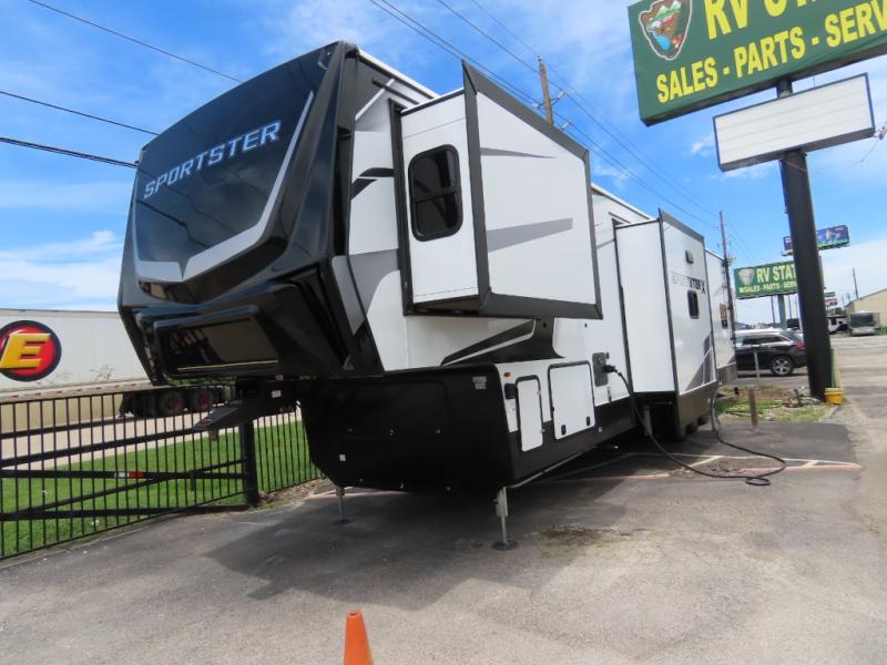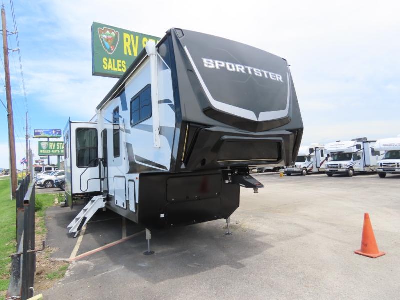 The BEST RV financing! This Sportster is designed with the ultimate adventurer in mind! This fifth-wheel toy hauler with a 15' garage, is the perfect blend of comfort and elegance! Transport available!