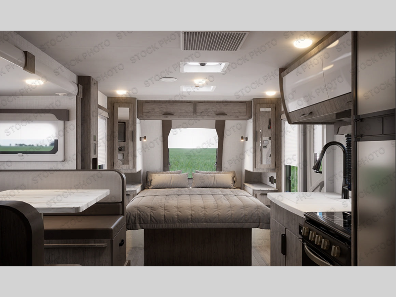Whether you're a mountain hiker, beach bum, in-town shopper, or early morning fisherman, this Lance travel trailer is for you! A full rear bathroom adds privacy as you get ready in the morning, and the deluxe queen pillowtop innerspring mattress with a bedspread and two LED reading lights is at the other end of the trailer. This bed can be sectioned off by drawing the privacy curtain, and the U-shaped dinette will provide sleeping accommodations for two more people. If you prefer, you can even change out the bed for the optional convertible sofa bed. Each person will benefit from a hot meal prepared in the kitchen on the stainless steel three-burner range or you can choose the optional convection/micro-air fryer.