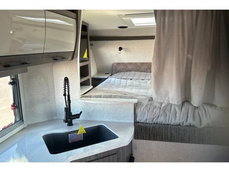 There's no better time than now to start camping in a Lance truck camper! Each model is constructed with a full aluminum frame, a one-piece roof membrane, and block foam insulation throughout to enjoy four seasons of camping. You'll appreciate a keyless entry, an exterior shower, electric remote camper jacks, and eye-catching mountain scene graphics. Inside, there are flat panel cabinet doors, Euro-ply non-toxic cabinet construction, a combo blackout screen and shade, plus a convenient key hanger. There is also a dual pane bath skylight, a solid surface galley countertop, a pop-up charging tower, plus many more interior comforts. And don't forget to check out the select optional features available to further customize your truck camper!